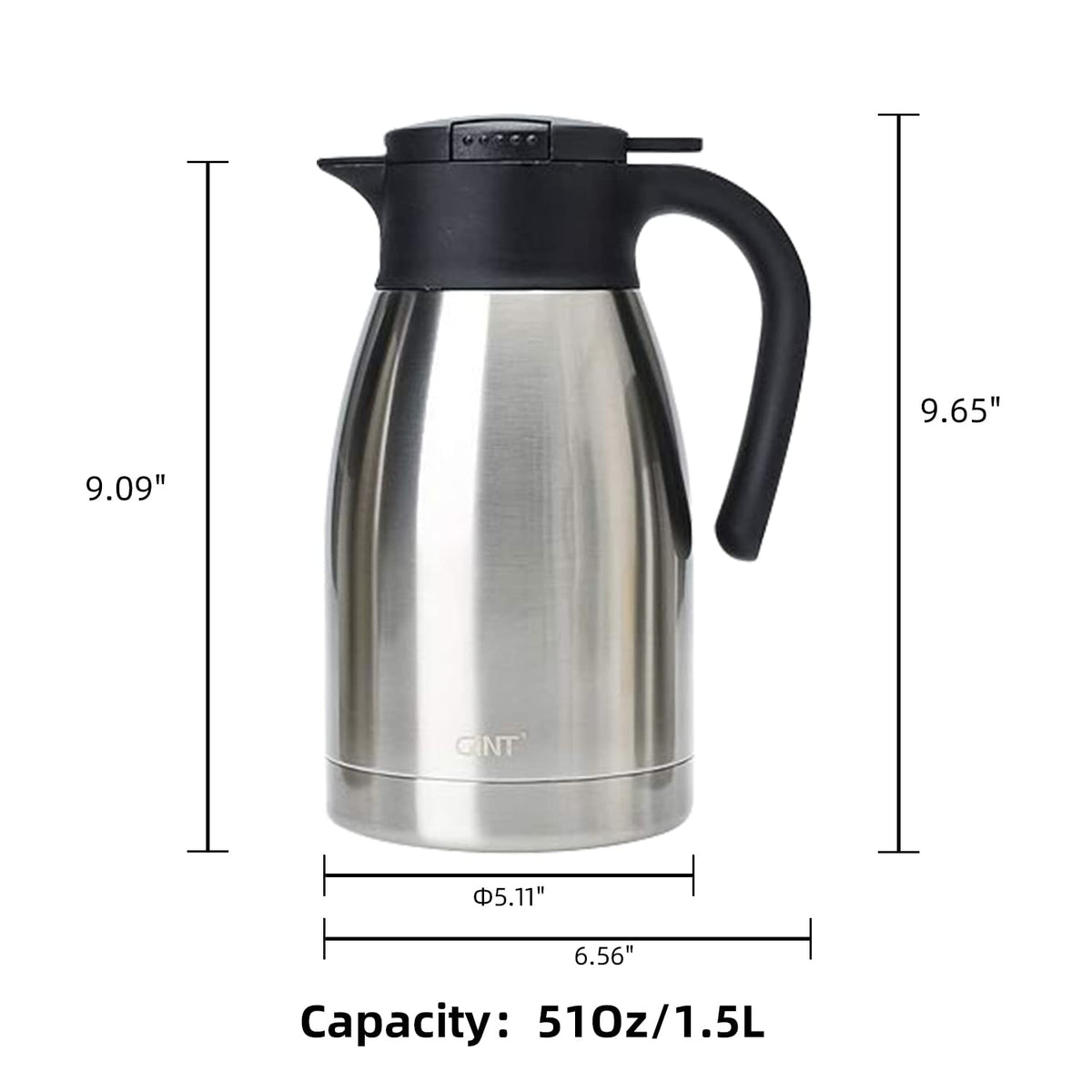 Gint With Its Enthusiasm And Profession In Insulated Containers Provides Food-Grade Insulation Products To Every Family In The World, To Help Every User Achieve Energy-Efficient, Healthy, Convenient And Quality Life. Gint Thermal Coffee Carafe Can Keep Your Beverage Perfect Hot (Or Extremely Cool ) Until The Last Sip. Double Wall Stainless Steel Ensures Strong Durability, And Disassemble Lid Convenient For Cleaning. We Are Trying To Make The Best Thermal Carafe For Your Everyday Use. Bring Us Along With You And Share Your Moments With Us. Gint Double-Walled Stainless Steel Vacuum Insulation Keeps Your Beverage Hot Up To 12 Hours Or Cold Up To 24 Hours.Wide-Mouth Architecture Allows Even The Most Distracted Users To Pour Hot Or Cold Liquids Without Spilling A Drop.Dual Silicon Rings Designed With A New Insulated And Air-Tight Construction That Provide Leak-Proof And Temperature Preservation. Gint With The Lid Of The Thermal Carafe Can Be Opened Easily With Two Fingers.When Closed, Place The Cap On The Top Of The Bottle And Press It Down. The Operation Of Adding Water Is Simple And Convenient.The Thermal Coffee Carafe With Detachable Design Helps You Restore The Sparkling Shine On The Inside And Makes It Easy To Clean Up The Interior Of The Lid After Use.