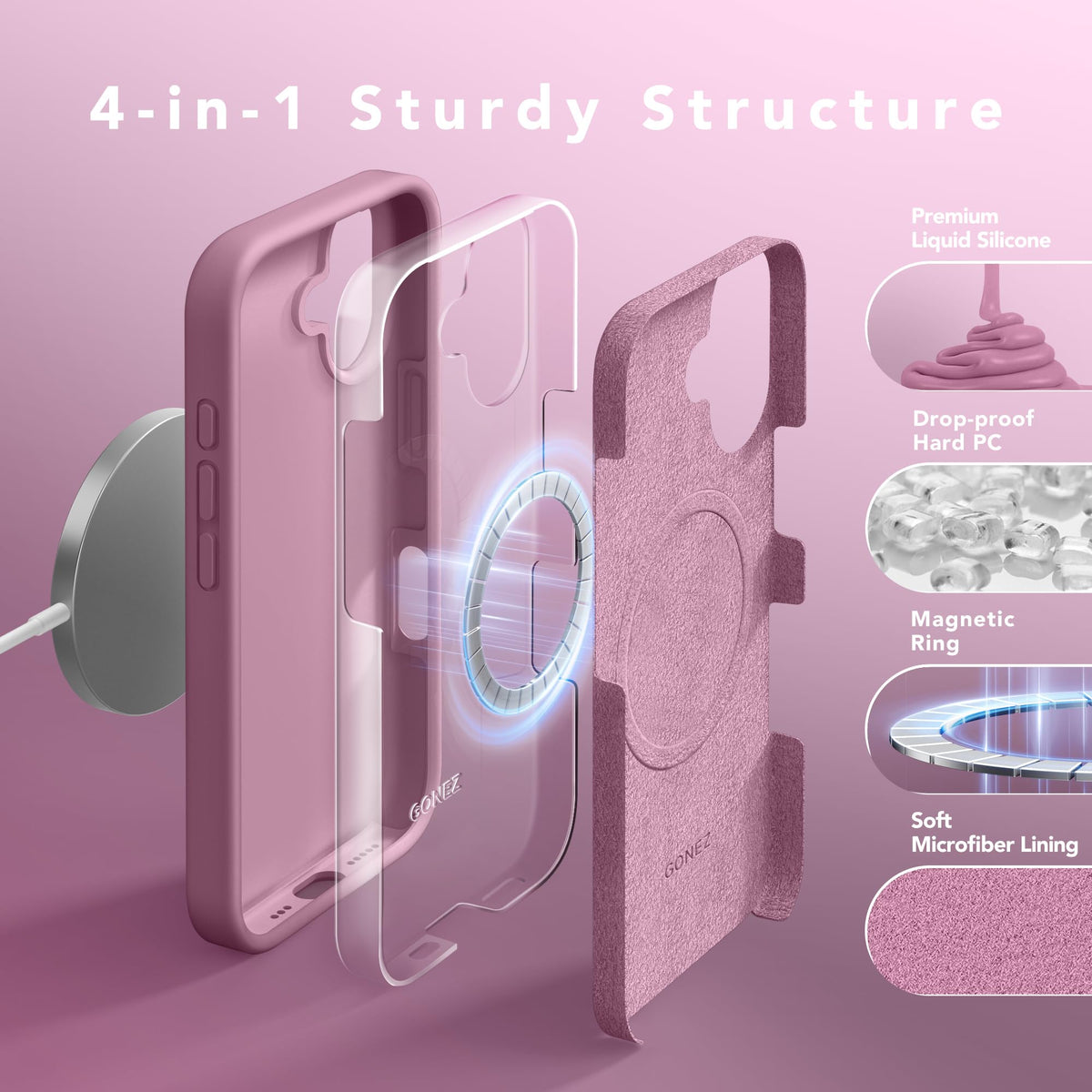 Gonez Magnetic For Iphone 16 Case, [Compatible With Magsafe] [2X Screen Protector + 2X Camera Lens Protector], Liquid Silicone S