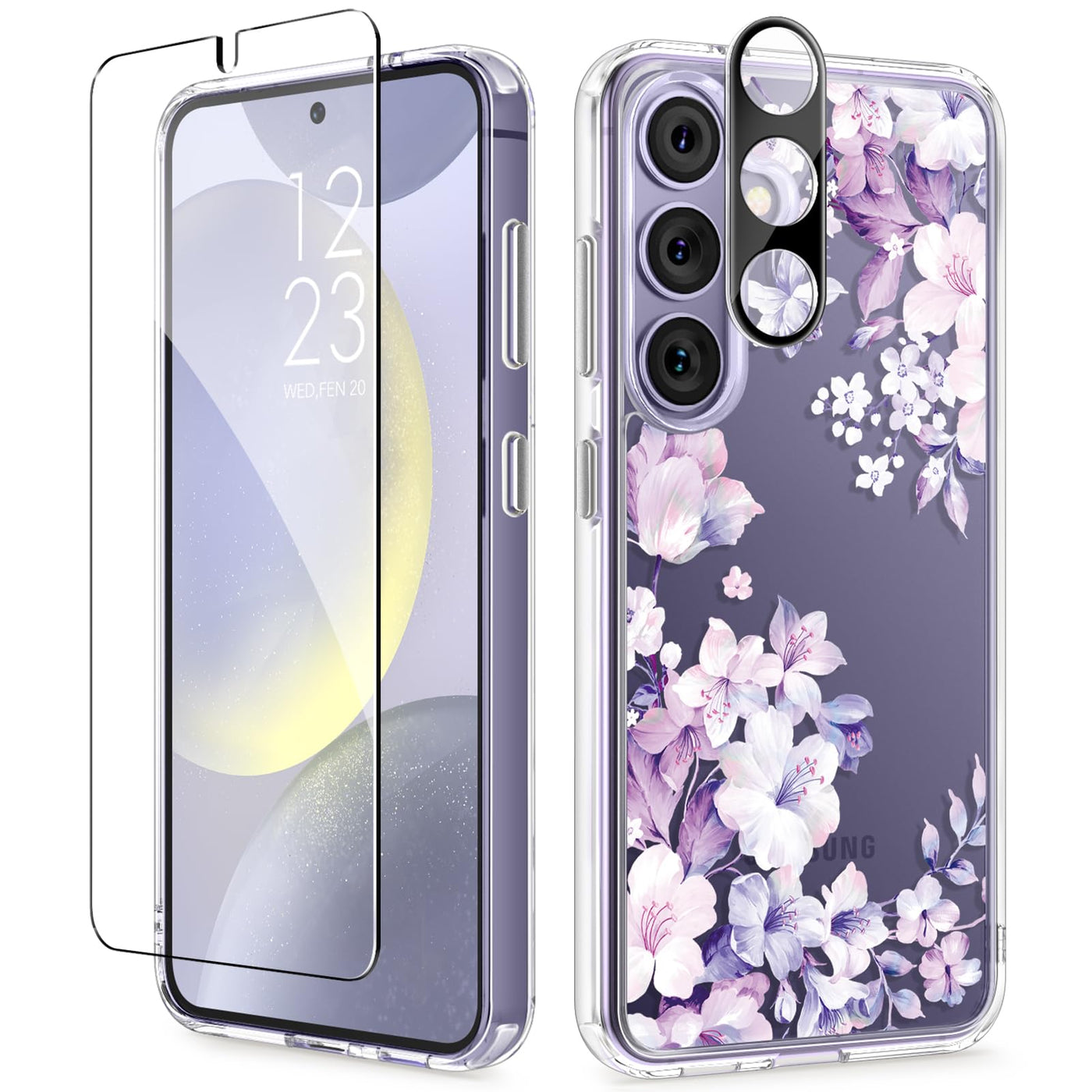 Gviewin For Samsung Galaxy S24 Plus Case With Screen Protector+Camera Lens Protector, Clear Stylish Floral Pattern Slim Protecti