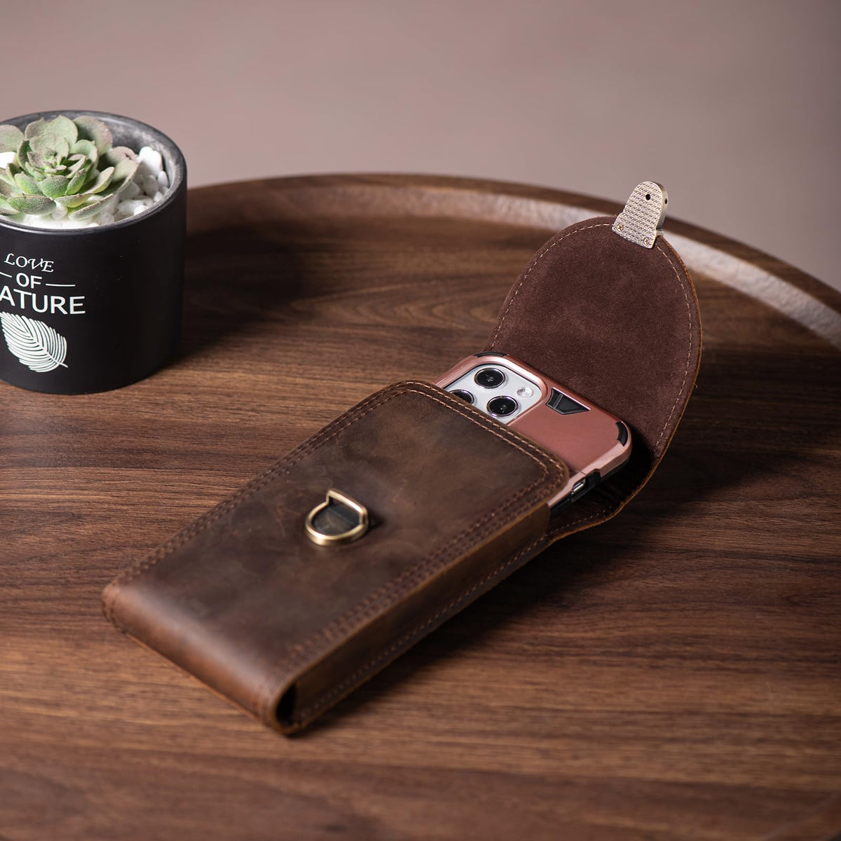 Are You Tired Of Fumbling For Your Phone Or Searching Through Pockets And Bags To Find It When You Need It The Most? If So, Youre In The Right Place. Introducing Hengwin Belt Clip Phone Holster, A Solution Designed To Make Your Life Easier And Keep Your Phone And Essential Cards Within Easy Reach. Genuine Leather Craftsmanship Experience Quality Like No Other With Our Genuine Leather Phone Holster, Made Ensure It Stands The Test Of Time, Providing Exceptional Durability And Lasting Beauty. The Soft And Flexible Leather Not Only Exudes Style But Also Offers Effortless Opening And Closing, Giving Your Mobile Phone The Protection It Deserves. Designed For Your Convenience Our Phone Holster Is Designed With Your Convenience In Mind. The Deep Phone Slot, With An Open Top, Ensures Easy Access To Your Device. Plus, Weve Integrated Air Holes At The Bottom To Prevent Moisture Buildup And Make Sliding Your Phone In And Out A Breeze. Its All About Making Your Life Easier. Flexible Carrying Options Carry Your Phone Holster The Way That Suits You Best. With A 2.4 Inches Belt Loop, It Easily Fits Standard-Sized Belts. For Added Versatility, Weve Included A Carabiner Belt Clip, Allowing You To Securely Attach It To A Belt Loop Or Other Suitable Locations Like A Backpack. Enhanced Security Features We Take Your Phones Safety Seriously. Our Holster Comes With A Heavy-Duty Brass Snap Lock, Ensuring That The Cover Flap Stays Securely In Place. The Carabiner Belt Clip Features A Spring-Lock Feature, Guaranteeing That It Remains Securely Attached Wherever You Clip It. Additionally, Our Belt Loop Is Reinforced With Four Metal Studs To Prevent Tearing Apart. You Can Trust In The Security And Durability Of Our Phone Holster.