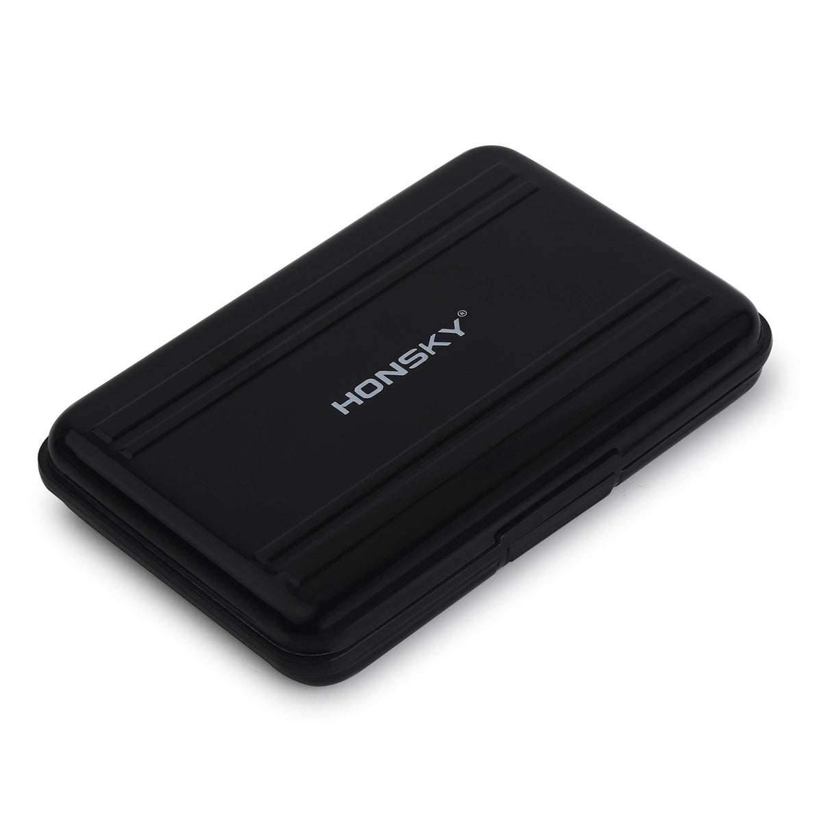 Q: What types of memory cards can this Honsky case hold?A: The Honsky Aluminum Memory Card Case can hold up to 8 SD cards and 8 micro SD cards, including all versions such as SDHC and SDXC, making it versatile for a variety of memory card types.