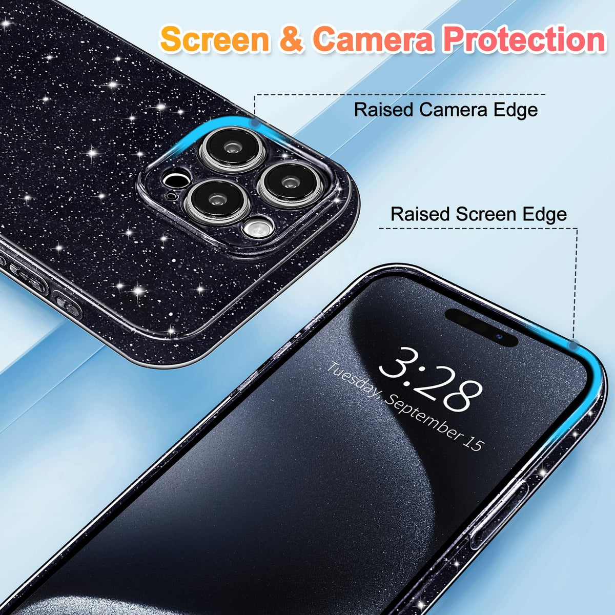 Hython Case For Iphone 15 Pro Max Case Glitter Cute Sparkly Shiny Bling Sparkle Phone Cases 6.7, Thin Slim Fit Soft Tpu Bumper S