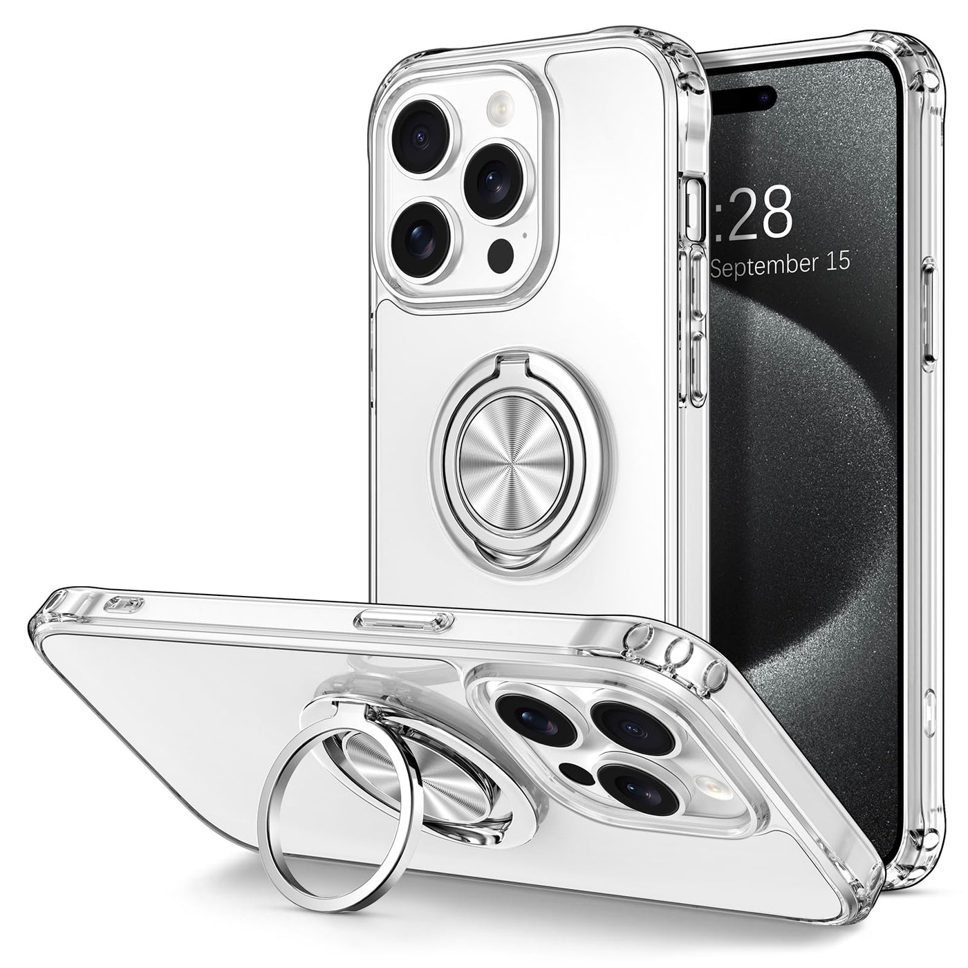 Hython Clear For Iphone 15 Pro Max Case With Ring Stand [360 Rotatable Ring Holder Magnetic Kickstand] [Support Car Mount] Trans