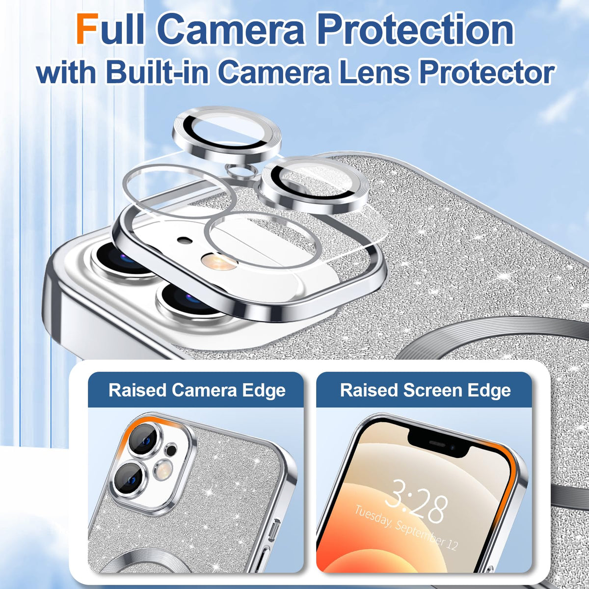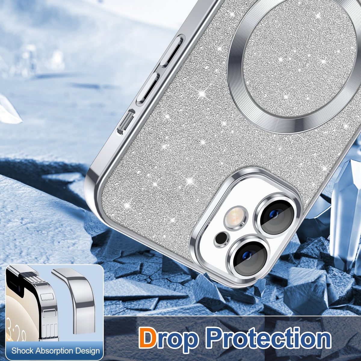 Hython For Iphone 12 Case Glitter, Clear Magnetic Phone Cases With Camera Lens Protector [Compatible With Magsafe] Bling Sparkle