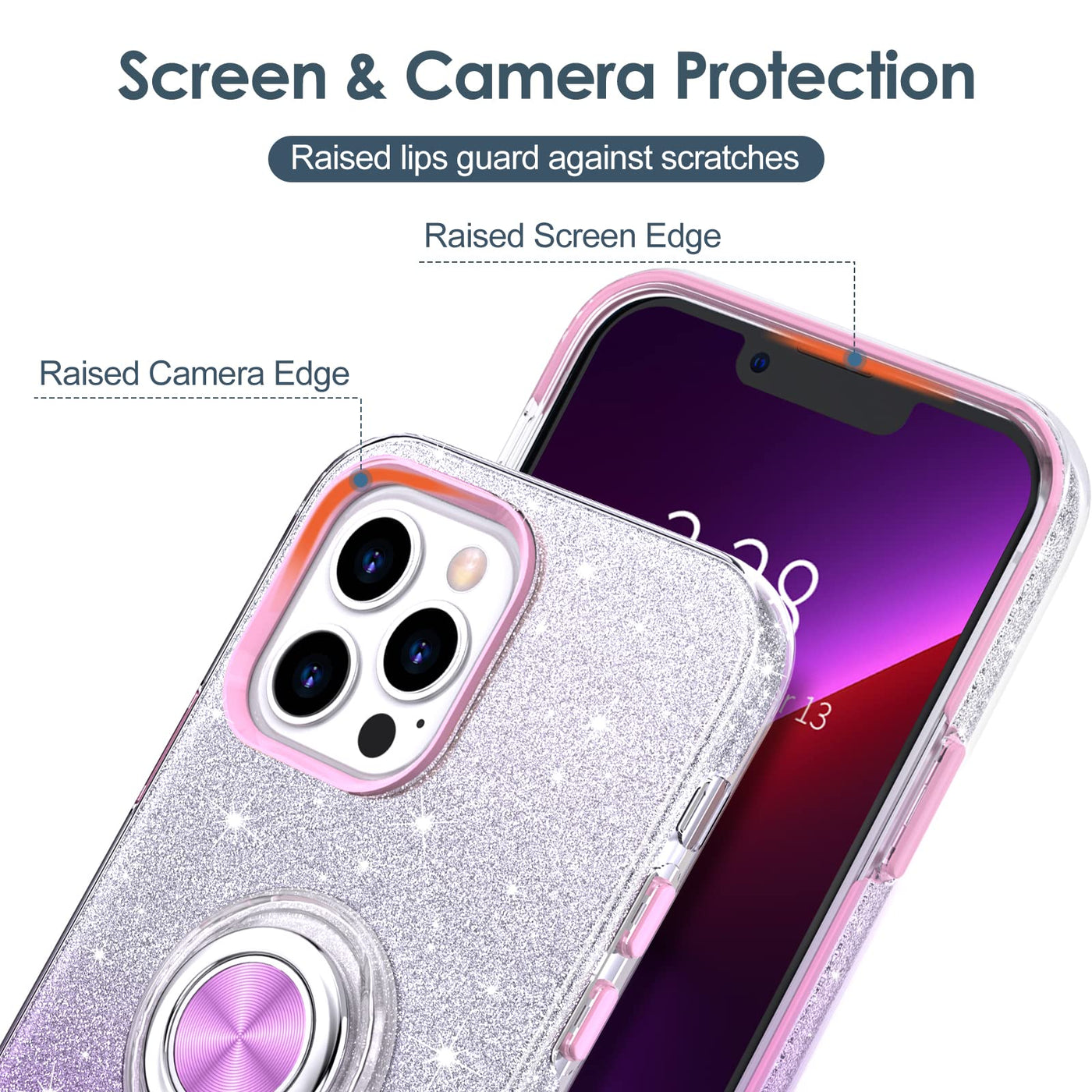 Hython For Iphone 13 Pro Case With Ring Stand [360 Rotatable Ring Holder Magnetic Kickstand] [Support Car Mount] Cute Sparkly Gl
