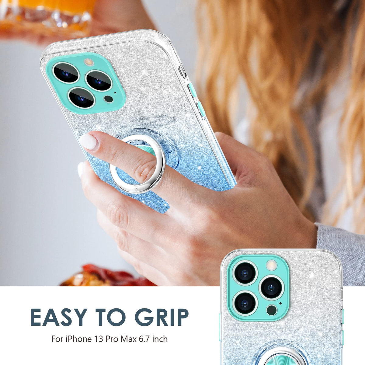 Hython For Iphone 13 Pro Max Case With Ring Stand [360 Rotatable Ring Holder Magnetic Kickstand] [Support Car Mount] Cute Sparkl