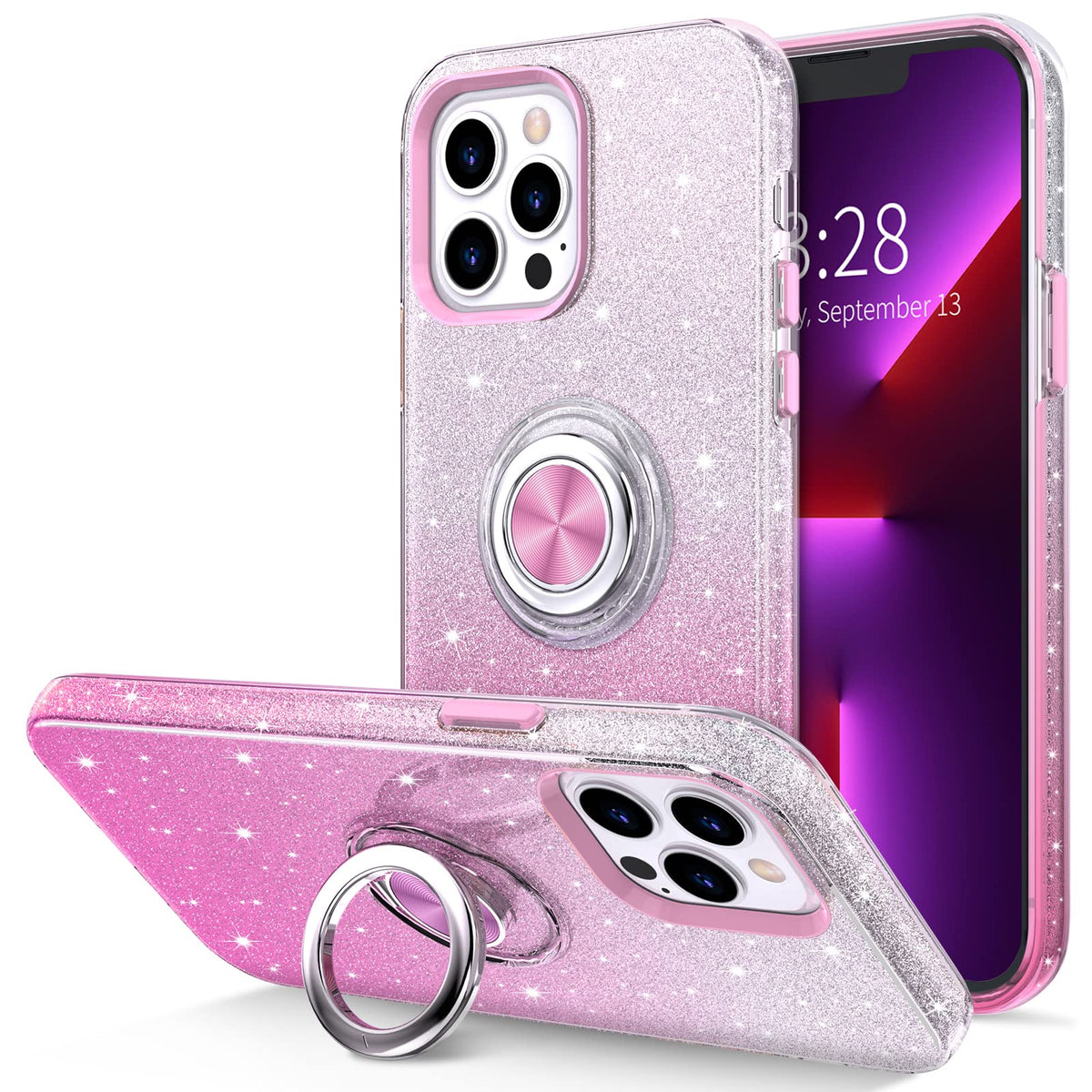 Hython For Iphone 13 Pro Max Case With Ring Stand [360 Rotatable Ring Holder Magnetic Kickstand][Support Car Mount] Cute Sparkly