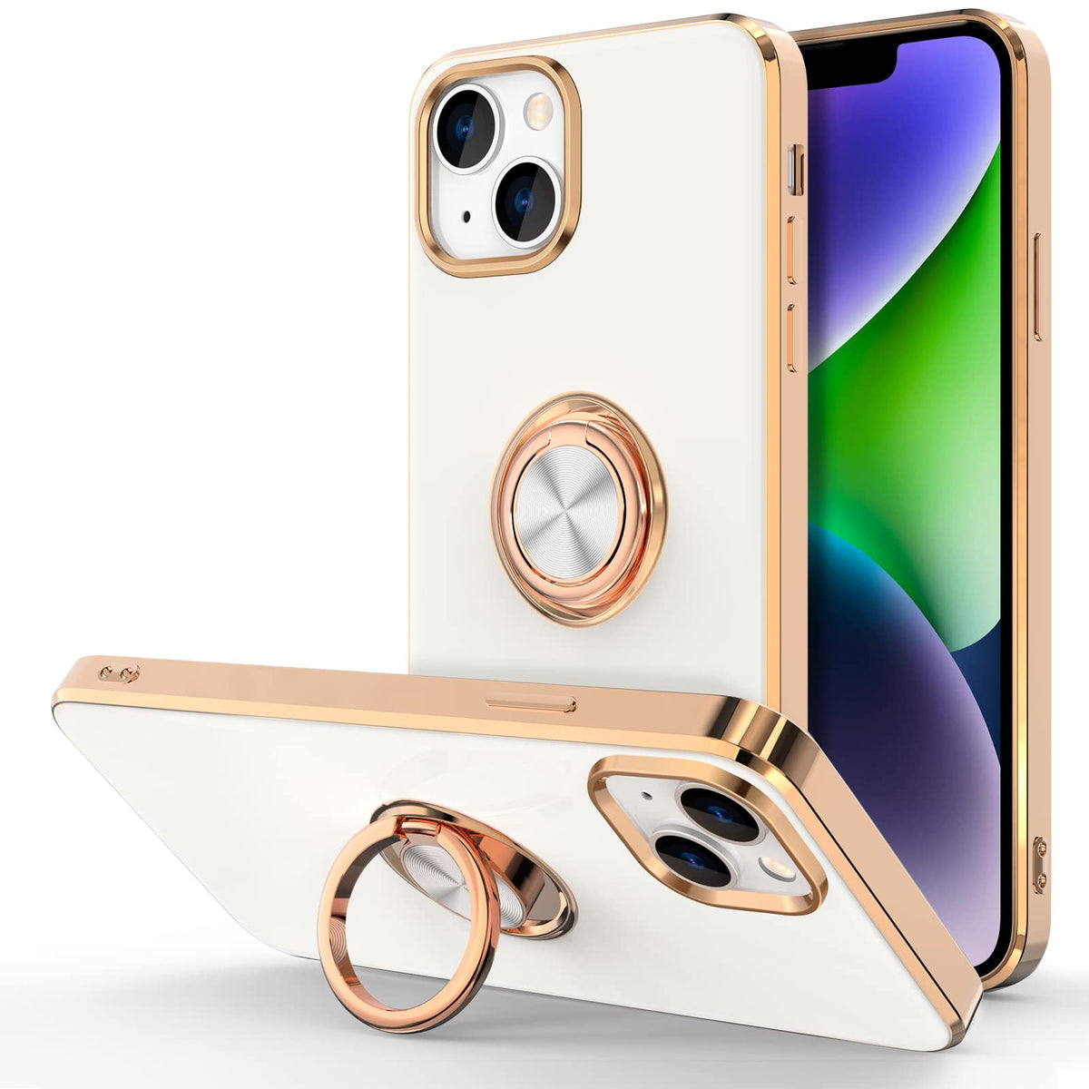 Hython For Iphone 14 Case With Ring Stand [360 Rotatable Ring Holder Magnetic Kickstand] [Support Car Mount] Plated Rose Gold Ed