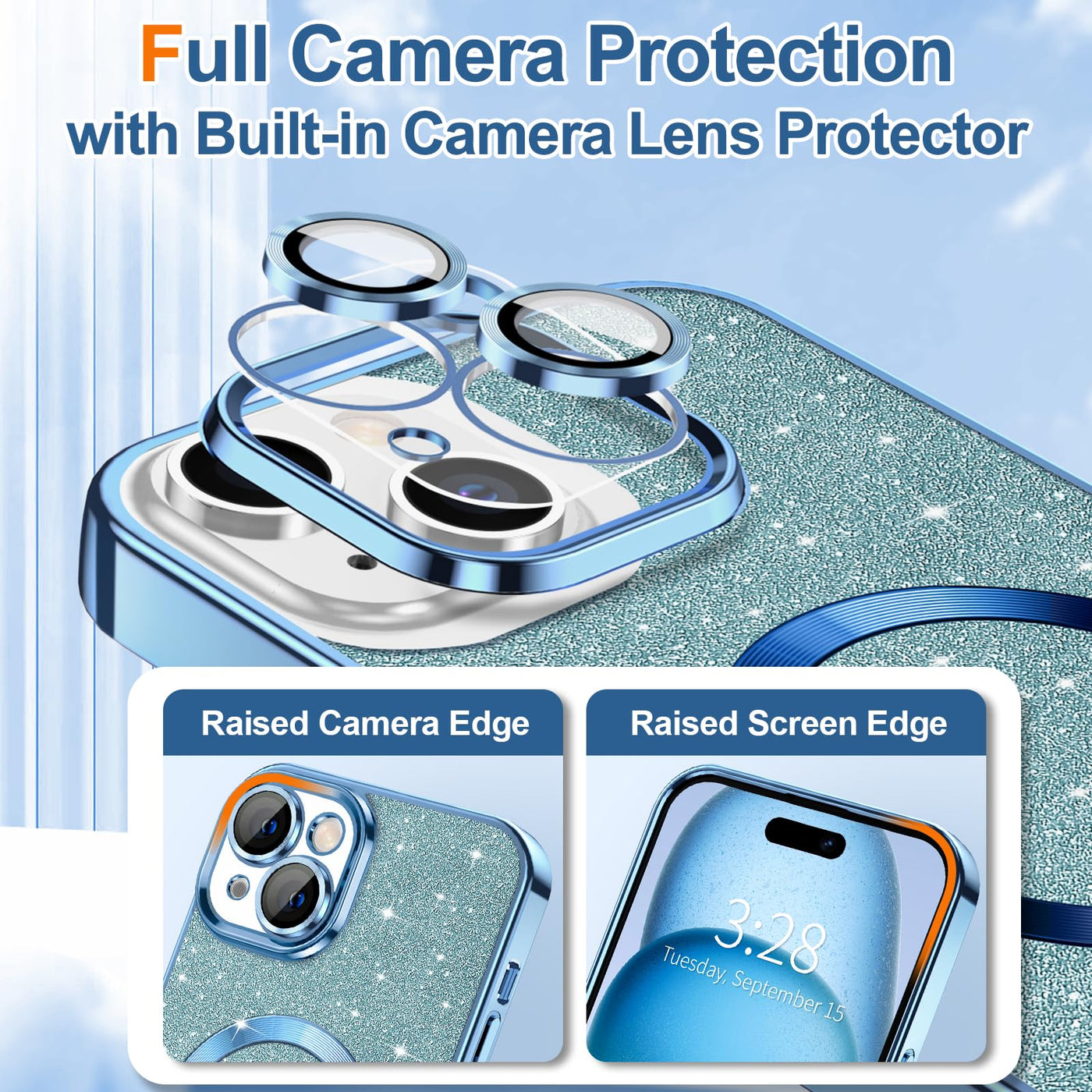 Q: What kind of protection does this case offer for my iPhone 15 Plus?A: The case provides full body protection, including a built-in camera lens protector and a raised lip to protect the screen when placed down. Its shockproof bumper corners help safeguard against daily drops and scratches.