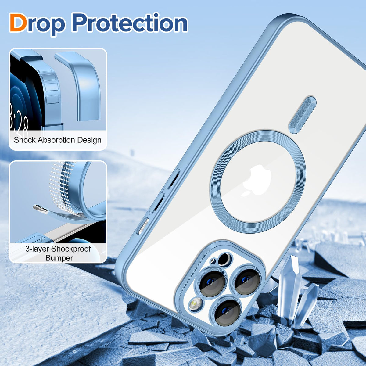 Hython Magnetic Clear Case For Iphone 12 Pro Case With Camera Lens Protector [Compatible With Magsafe] Luxury Plating Edge Slim