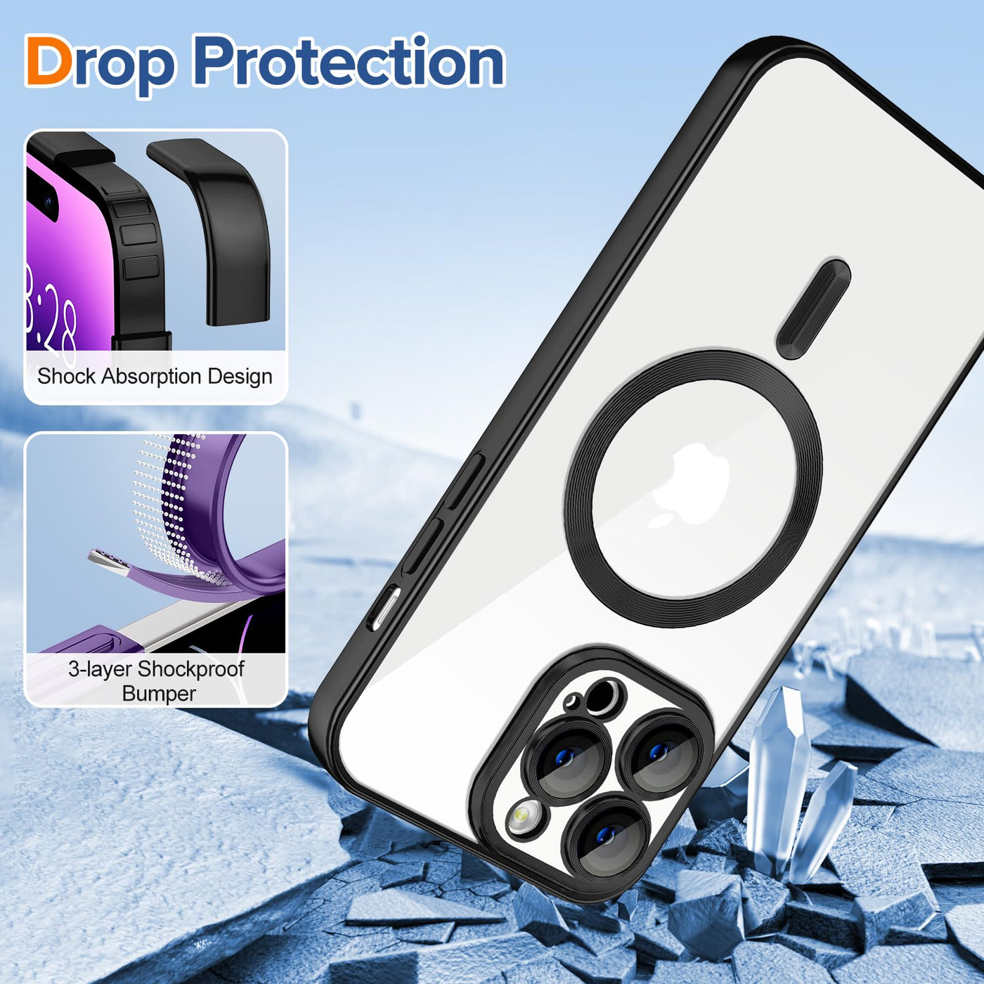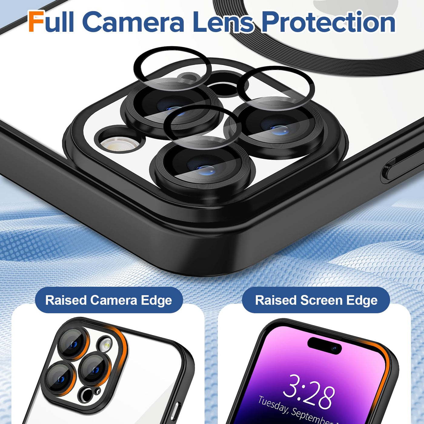 Hython Magnetic Clear Case For Iphone 14 Pro Max Case With Camera Lens Protector [Compatible With Magsafe] Plating Edge Slim Sof