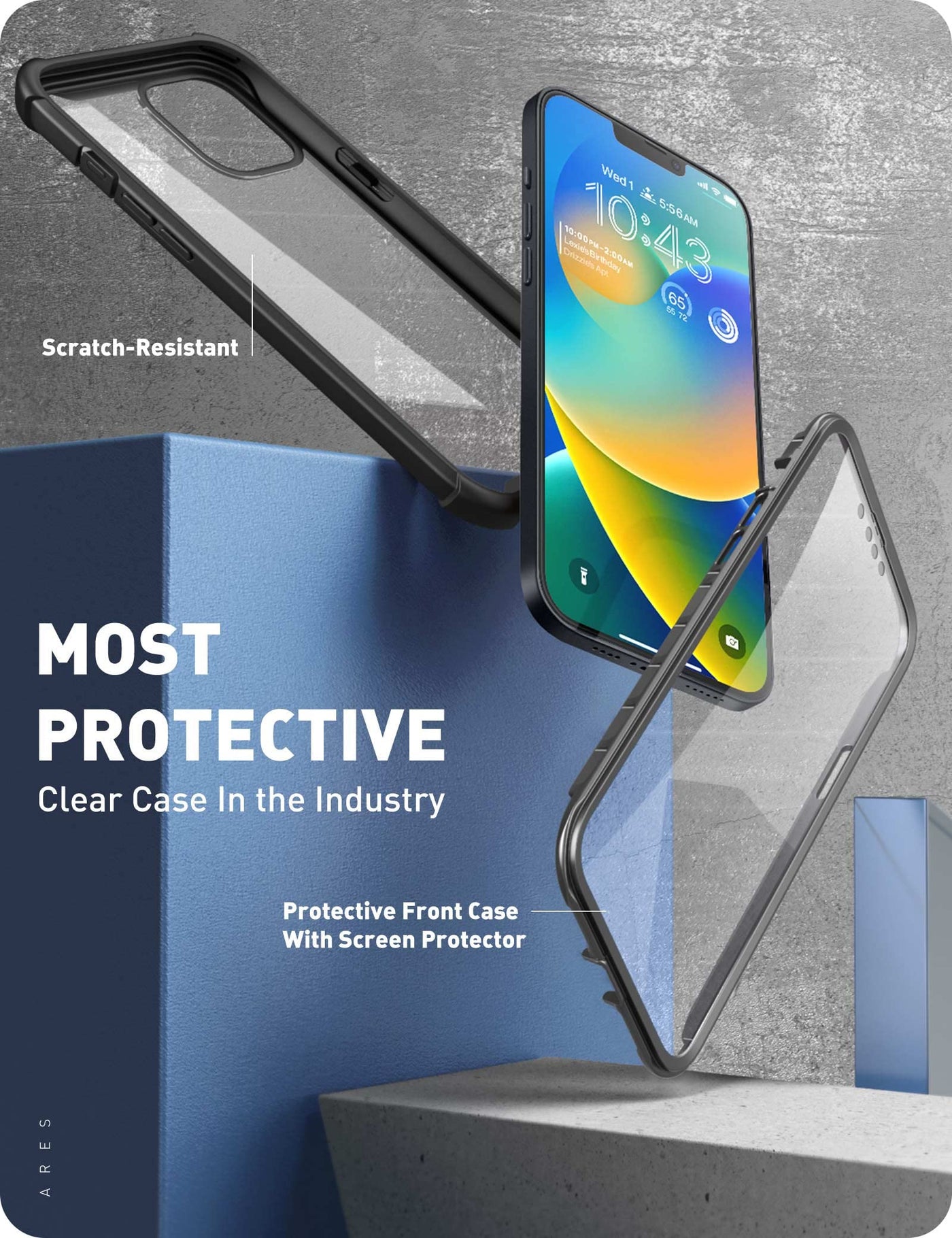I-Blason Ares Transparent Case Bumper Case For Iphone 14 Iphone 13 Mobile Phone Case Black | 6.1 Inch, 360 Degree, Robust Protective Cover, With Screen Protector, 2022