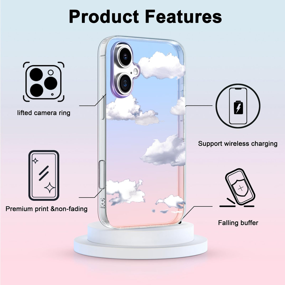 I Mgae In Ar Compact Case For Iphone 16 Holographic Cloud Design,Cute Trendy Soft Slim Tpu Shockproof Protective Phone Cases Cov