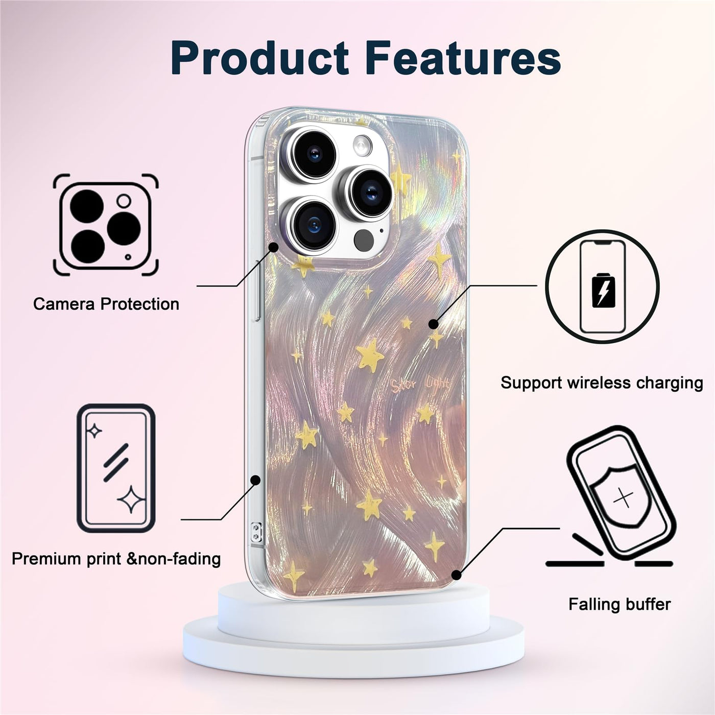 Q: What makes this phone case suitable for women and girls?A: The case features a creative laser design in a Fade Star color, making it a fashionable accessory that easily matches daily outfits and is suitable for various occasions.