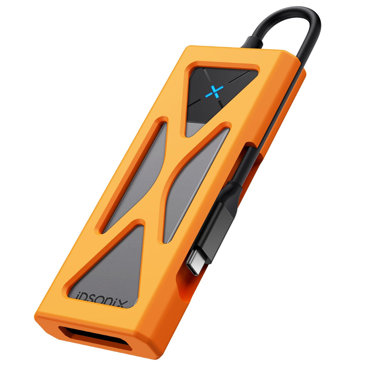 Q: Is the iDsonix M.2 Enclosure portable and easy to carry?A: Yes, the iDsonix M.2 Enclosure features a portable integrated design with a built-in cable storage groove in the silicone protector, making it convenient for outdoor use.