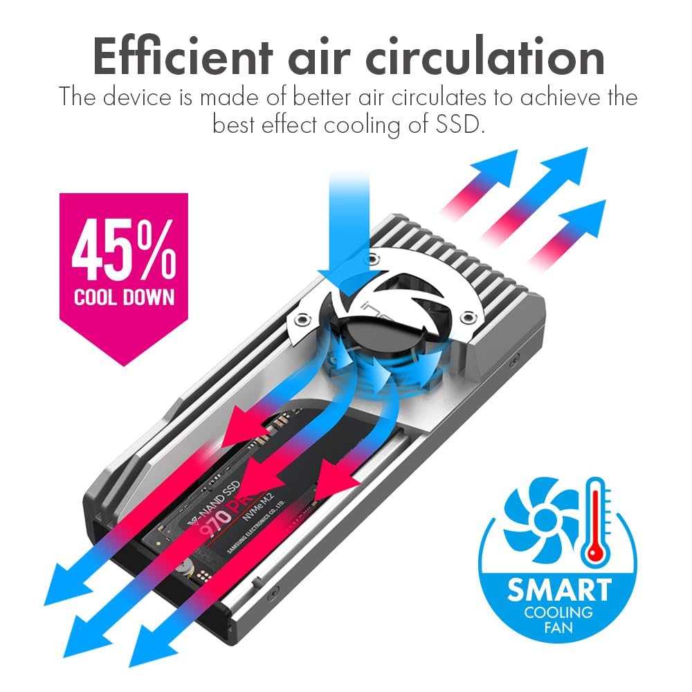 Ineo Usb 4.0 M.2 Nvme Ssd Enclosure With Built In Cooling Fan Compatible With Thunderbolt 3/4 & Usb 4/3/2 [C2598 Nvme, 40Gbps]