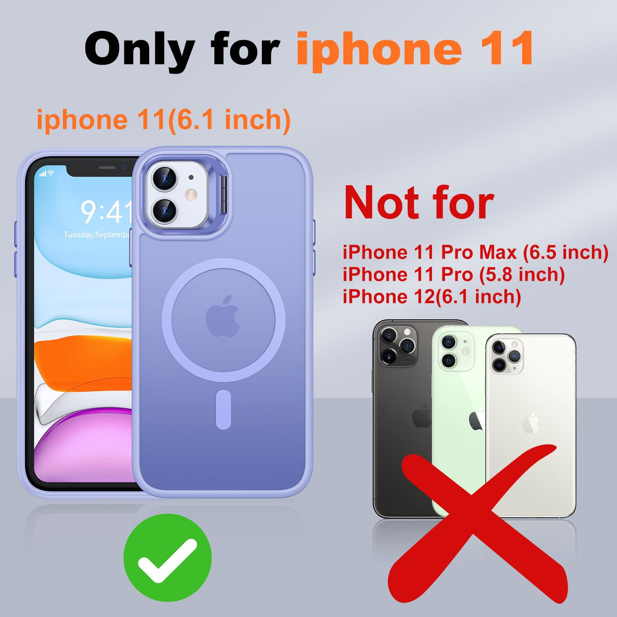Jame For Iphone 11 Case, Iphone 11 Phone Case With 2 Tempered-Glass Screen Protectors, [Compatible With Magsafe], [Military-Grade Protection], Slim Fit Phone Case For Iphone 11 Case, Lavender [Designed For Iphone 11 Case] - Jame For Iphone 11 Case With Screen Protector Only Compatible With Iphone 11, 6.1 Inch, Does Not Fit For Iphone 11 Plus/Pro/Pro Max Or Other Phone Models, Precise Hole Cutting And Alloy Buttons Ensures Easier Access To Every Button And Function, Please Confirm Your Phone Model Before Place An Order, Satisfaction Solution Is Always Here, Please Feel Free To Contact Us For Any Issues. [Stronger Wireless Charging Compatible] - Our Iphone 11 Cases Compatible With Magsafe Accessories And Chagers, Use The Latest Magnetic Coil Tech To Ensure A Faste And Safe Wireless Charging Without Removing The Case, Support Use With Wireless Power Bank, Wireless Charging Stand, Car Mount Charging, Provide 35% Charging Efficiency Than Original Charging. With Magnetic Back For Iphone 11 Case Reinforces The Magnetic Force, Making The Phone More Stable When Charging Or Using It On The Car Mount. [Slim Fit & Skin-Friendly] - This Phone Case Iphone 11 Suitable For Women And Men, Adopting New Upgraded Matte Translucent Coating Process And Using Environmentally Friendly Materials, Provides A Super Silky Touch Feeling, Ultra Slim Design Let You Feel The Original Iphone 11 Size Instead Any Bullky Once You Get Your Phone, And Protects Our Phones From Stains, Dust, Oil Or Sweat, Easily Wiped Away With A Damp Paper Towel. [Ergonomic Grip Design] - Our Iphone 11 Phone Case Is Crafted With An Ergonomic Frame Design, With Exclusive Anti-Slip And Esthetic Line, Brings A Ultimate Comfortable Grip And Preventing The Phone Surface From Becoming Slippery From Any Conditions, Greatly Reduces Accidental Falls Caused By Slippery Hands, The Lively Brightly Colored Lines Will Also Help You Find Your Phone At The First Time You Need. [Military-Grade Shockproof Protection]- Our Phone Case For Iphone 11 Is Made Of Top Premium Quality Tpu, Equipped With Ultra Strong Alloy Camera Protection Frame, Perfectly Passed Thousands Of High Altitude Drop Tests, And The 4 Corners Of The Case Have Built-In Drop-Proof Structure To Ensure Forceful Protection After An Accidental Drop! This Military-Grade 11 Phone Case Comes With 2Pcs Of Hd Tempered-Glass Screen Protectors For Iphone 11, Provide A Full Protection For Our Phones.