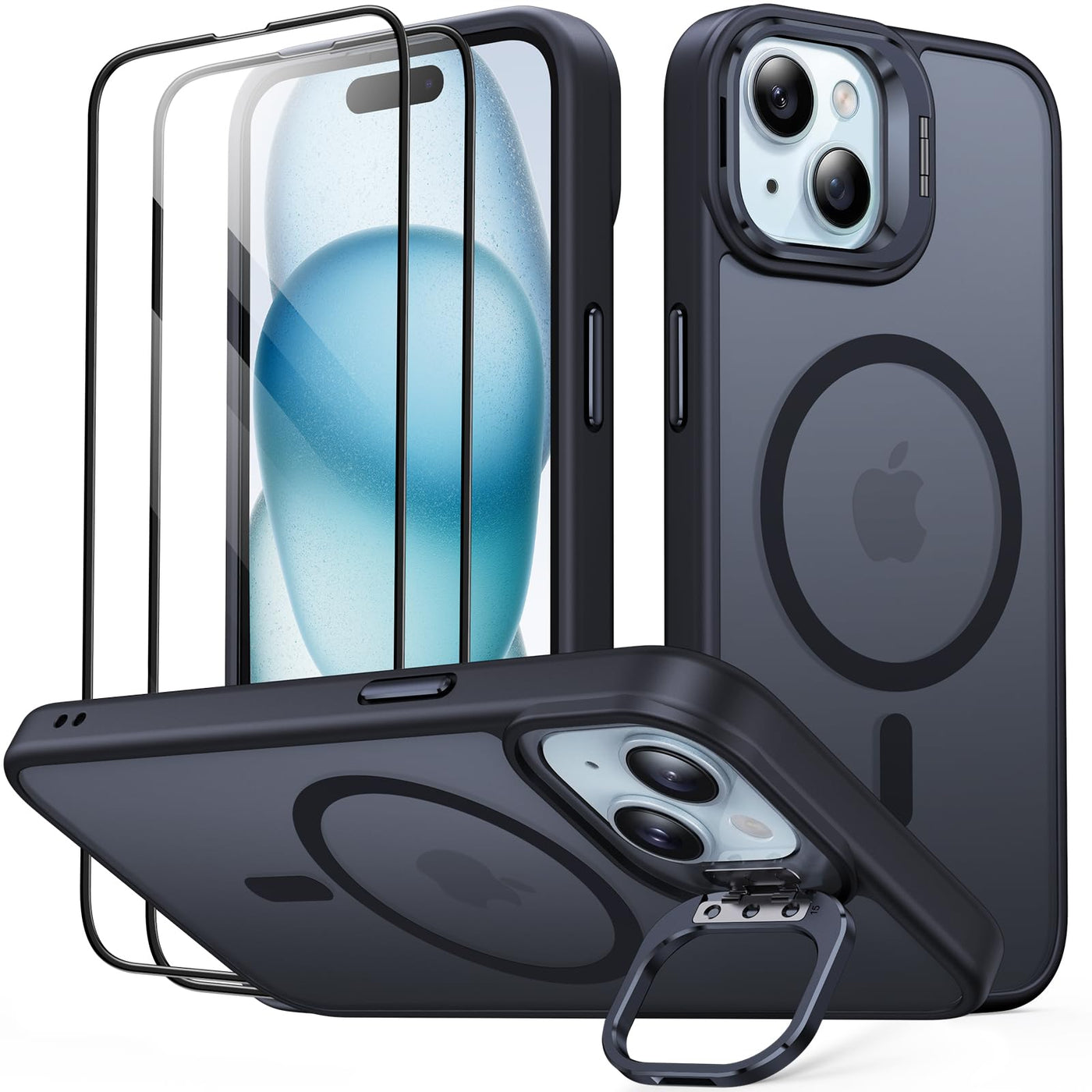 Jame For Iphone 15 Case With Stand, 2X [Tempered Glass Screen Protector], [Compatible With Magnetic], Built-In Camera Kick-Stand Phone Case For Iphone 15, Magnetic Case For Iphone 15, 6.1 , Black [Designed For Iphone 15 Case] - Jame For Iphone 15 Case With Screen Protector Only Compatible With Iphone 15, 6.1 Inch, Does Not Fit For Iphone 15 Plus/Pro/Pro Max Or Other Phone Models, Precise Hole Cutting And Alloy Buttons Ensures Easier Access To Every Button And Function, Please Confirm Your Phone Model Before Place An Order, Satisfaction Solution Is Always Here, Please Feel Free To Contact Us For Any Issues. [Stronger Wireless Charging Compatible] - Our Iphone 15 Cases Compatible With Magsafe Accessories And Chagers, Use The Latest Magnetic Coil Tech To Ensure A Faste And Safe Wireless Charging Without Removing The Case, Support Use With Wireless Power Bank, Wireless Charging Stand, Car Mount Charging, Provide 35% Charging Efficiency Than Original Charging. With Magnetic Back For Iphone 15 Case Reinforces The Magnetic Force, Making The Phone More Stable When Charging Or Using It On The Car Mount. [Slim Fit & Skin-Friendly] - This Phone Case Iphone 15 Adopt New Upgraded Matte Translucent Coating Process And Using Environmentally Friendly Materials, Provides A Super Silky Touch Feeling, Ultra Slim Design Let You Feel The Original Iphone 15 Size Once You Get Your Phone, And Protects Our Phones From Stains, Dust, Oil Or Sweat, Easily Wiped Away With A Damp Paper Towel. [Invisible Camera Guard Kickstand] - Our Iphone 15 Magsafe Case Has An Erospace-Grade Metal Kickstand Around The Camera, Add 3Mm Height To Protect The Lens When The Kickstand Closed, Has Been Rigorously Tested Over 10,000 Folding And Opening. The Camera Kickstand Support To Adjust Steplessly From 0-160 View Angle, Great For Using The Phone In Kitchen, Office, School, Outdoors, Selfie, Live Broadcast, Etc. The Stand Hole Also Can Be Used As A Hand Ring For Carrying. [Military-Grade Shockproof Protection]- Our Phone Case For Iphone 15 Is Made Of Top Premium Quality Tpu, Equipped With Ultra Strong Alloy Camera Invisible Kickstand, Perfectly Passed Thousands Of High Altitude Drop Tests, And The 4 Corners Of The Case Have Built-In Drop-Proof Structure To Ensure Forceful Protection After An Accidental Drop! This Military-Grade 15 Phone Case Comes With 2Pcs Of Hd Tempered-Glass Screen Protectors For Iphone 15, Provide A Full Protection For Our Phones.