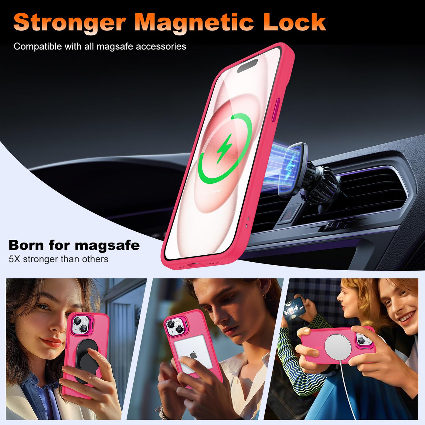 Jame For Iphone 15 Case With Stand, [Compatible With Magsafe], Built In Camera Kick Stand Phone Case For Iphone 15, Magnetic Cas