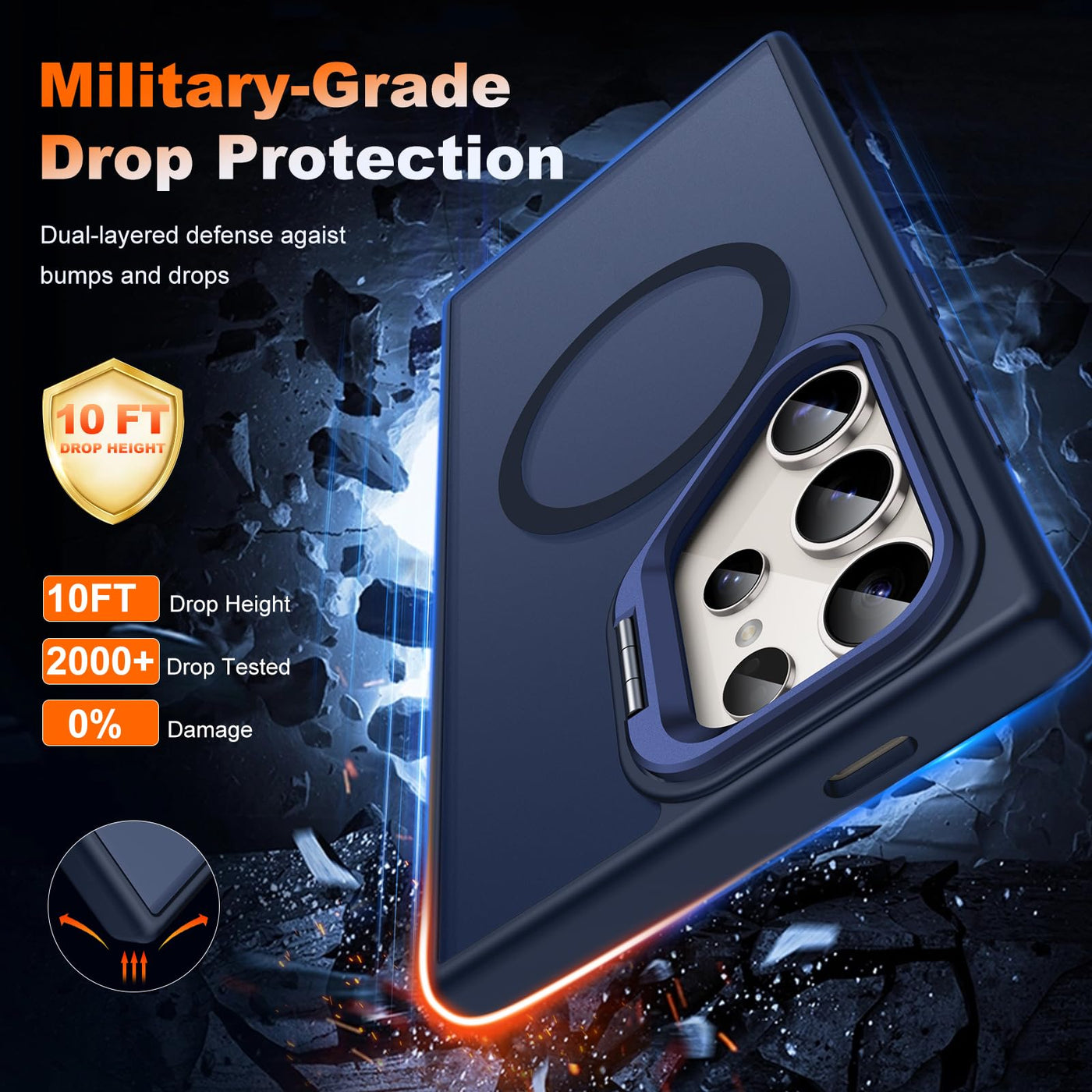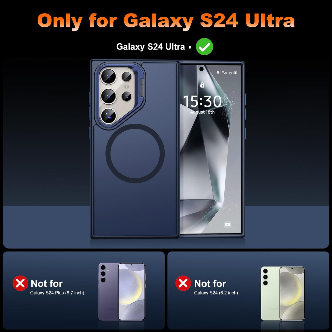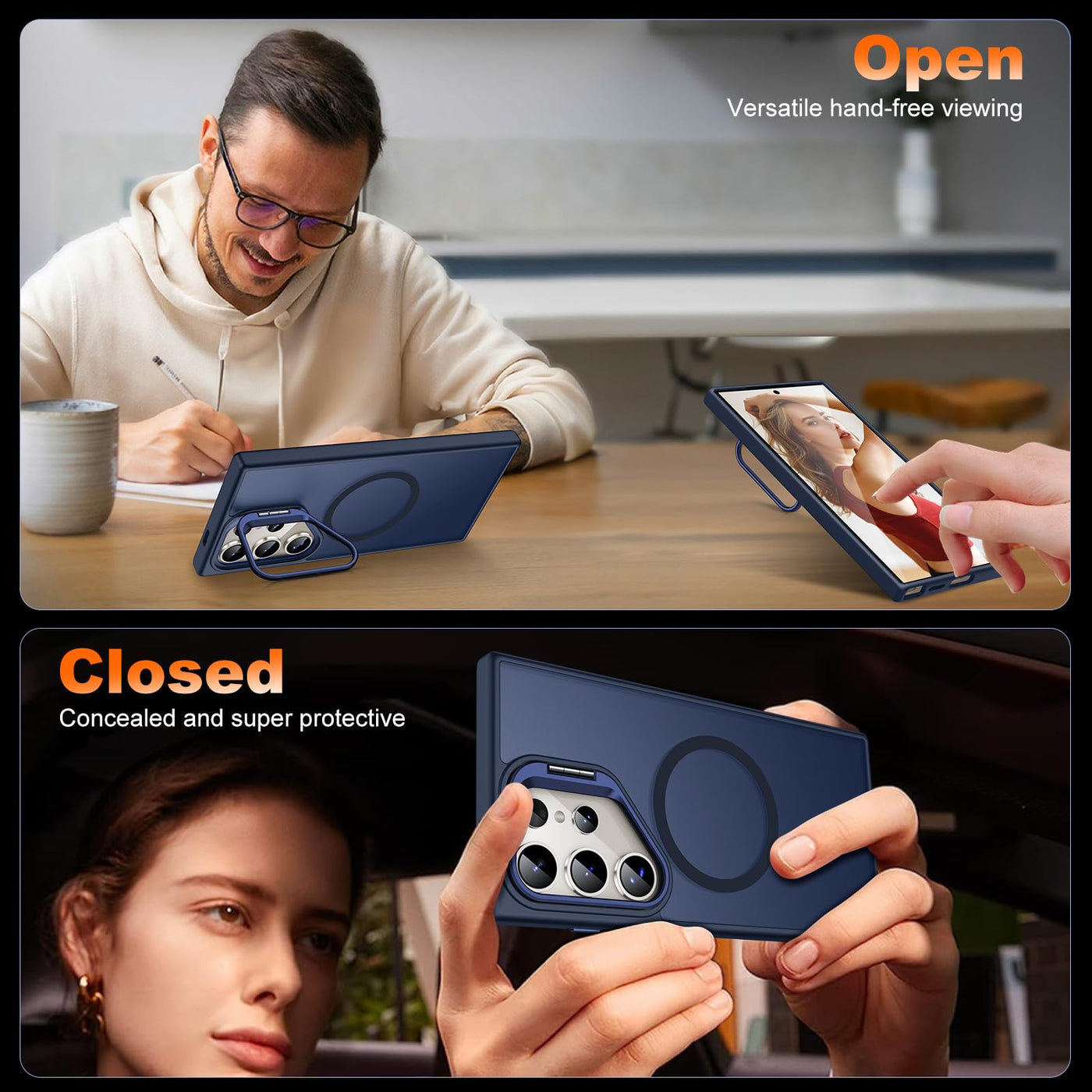 Jame For Samsung Galaxy S24 Ultra Case, Slim S24 Ultra Case With Stand, [Compatible With Magsafe], Built-In Camera Stand Translucent Matte Phone Case For S24 Ultra, Navy Blue