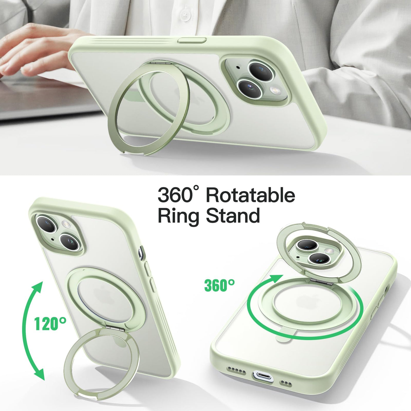 Jetech 360 Degree Rotatable Ring Case For Iphone 15 6.1-Inch Compatible With Magsafe, Slim Shockproof Phone Cover With Stand & R