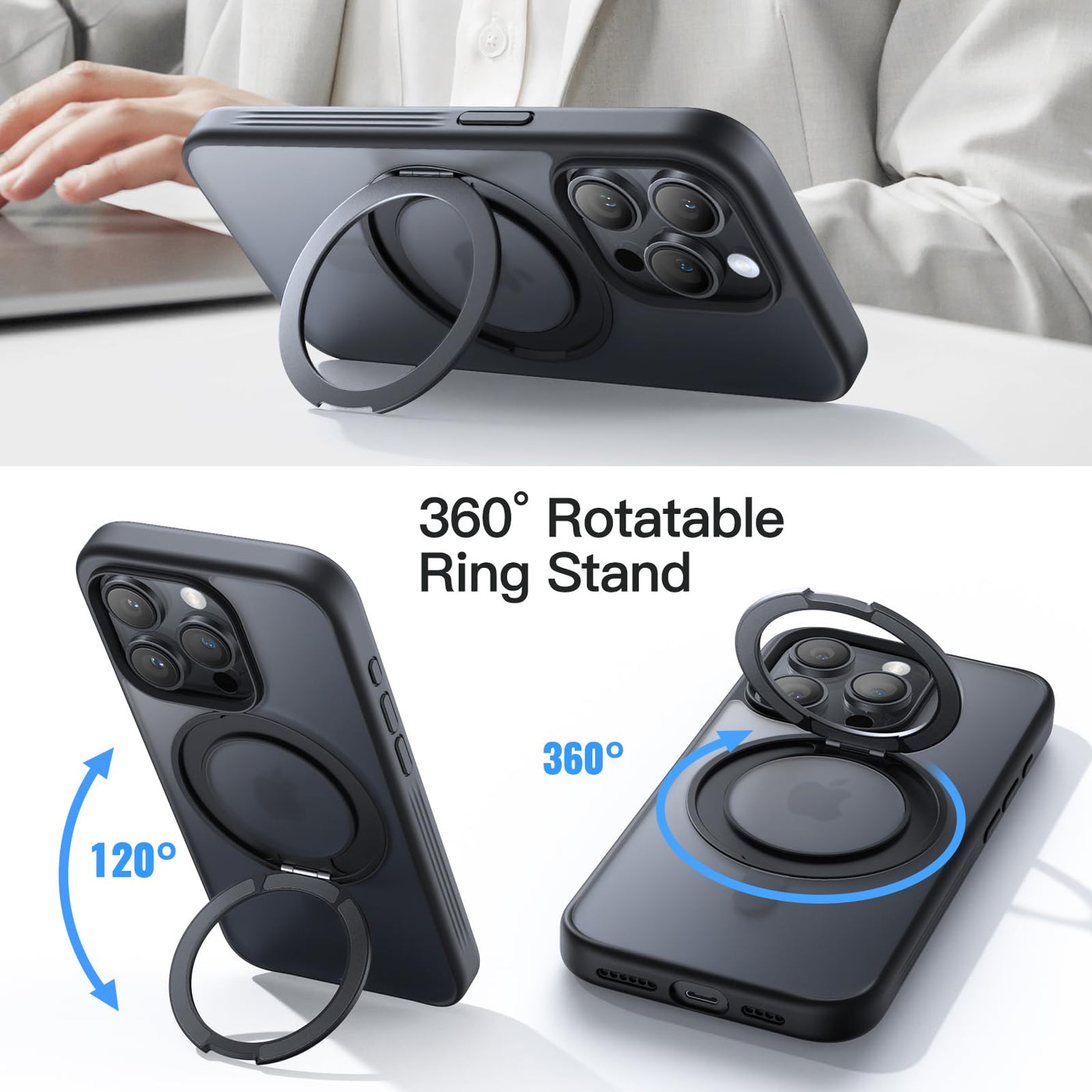 Jetech 360 Degree Rotatable Ring Case For Iphone 15 Pro Max 6.7-Inch Compatible With Magsafe, Slim Shockproof Phone Cover With S