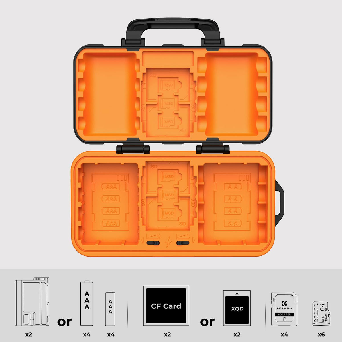 K&F Concept Camera Battery Sd Card Holder For 4 Sd Cards, 2 Camera Batteries, 6 Tf Cards, 2 Cf Cards Or 2 Xqds, Water-Resistant And Anti-Shock Memory Card Case