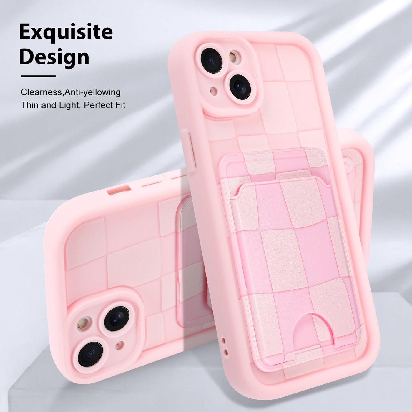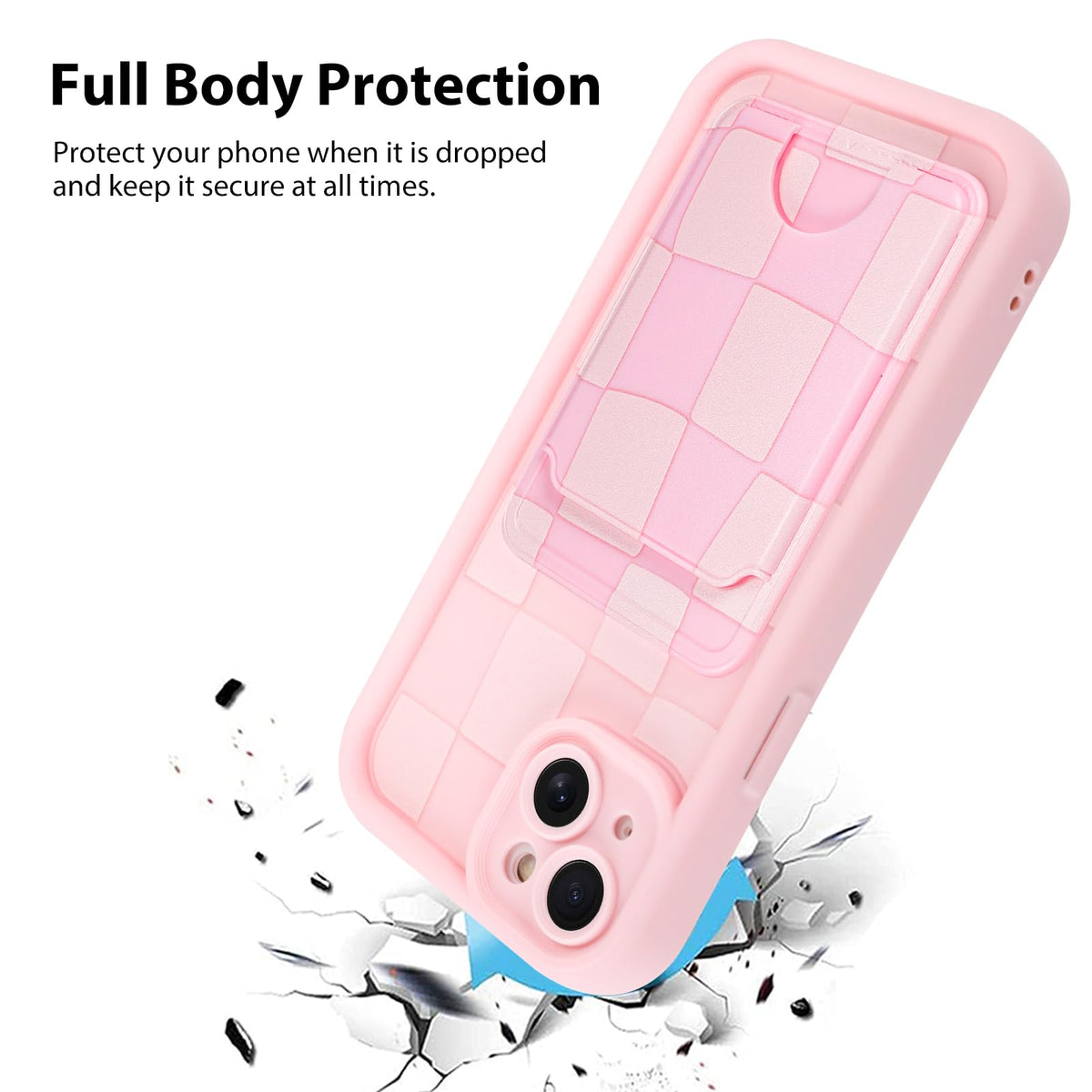 Kanghar Compatible With Iphone 14 Case, Wallet Silicone Checkered Cute Pattern, Card Holder Camera Protection Soft Slim Shockpro