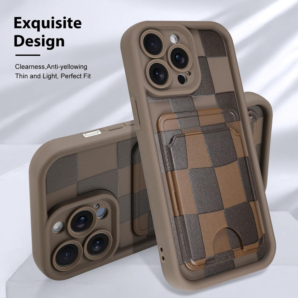 Kanghar Compatible With Iphone 14 Pro Case, Wallet Silicone Checkered Cute Pattern, Card Holder Camera Protection Soft Slim Shoc