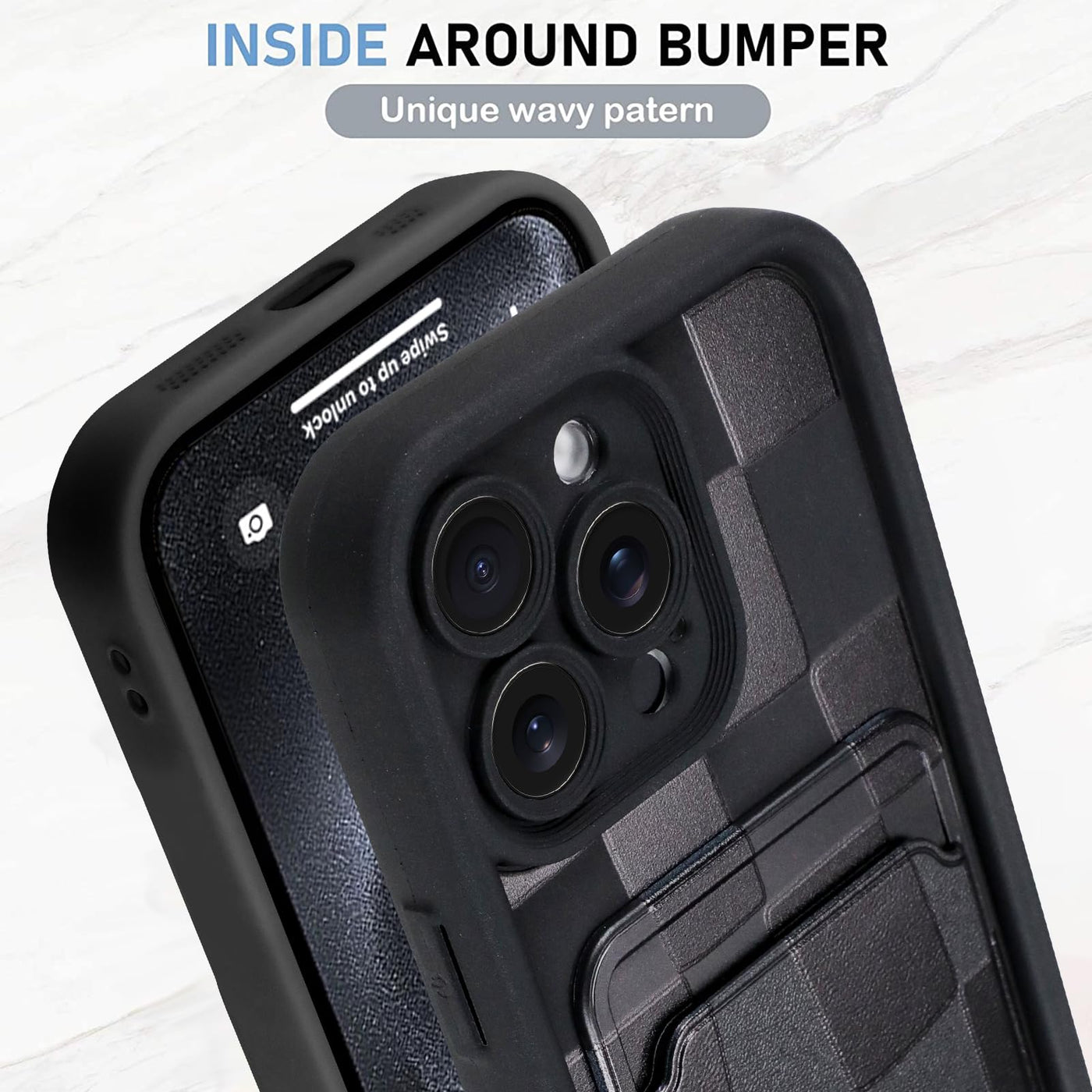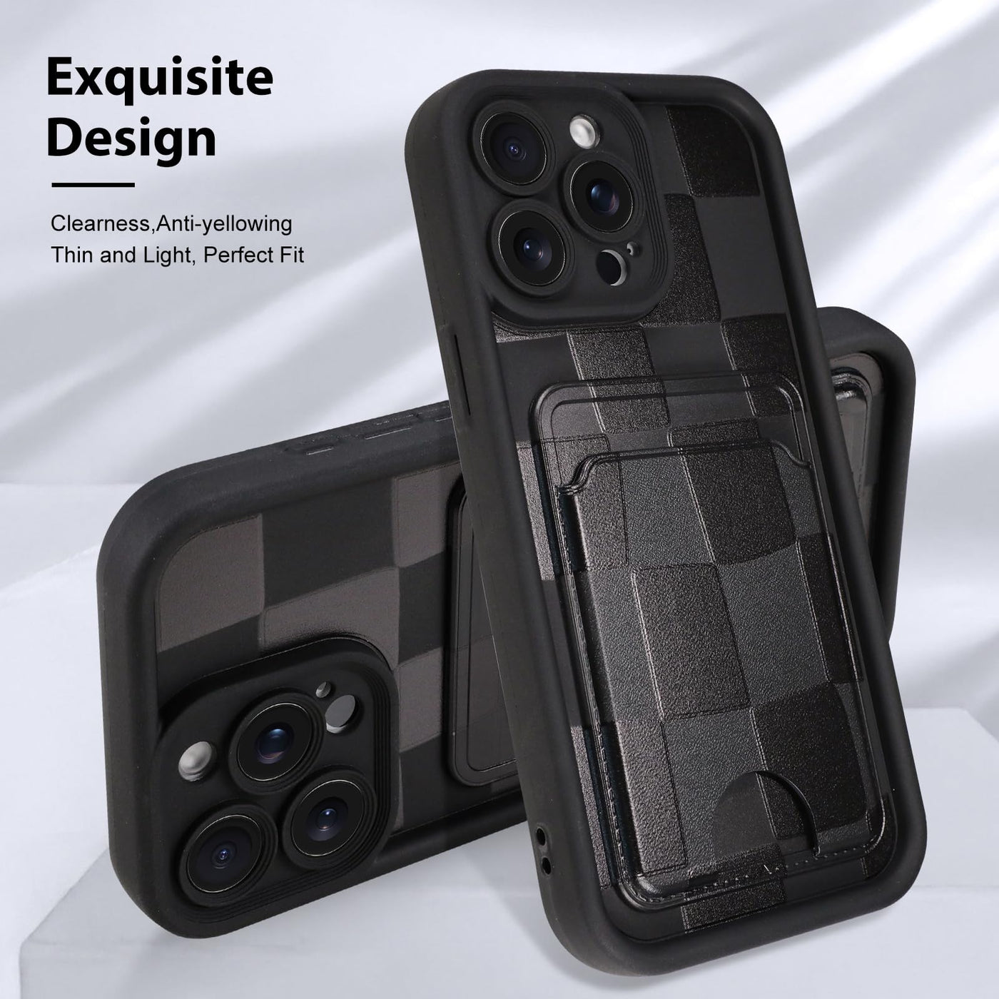 Kanghar Compatible With Iphone 15 Pro Max Case, Wallet Silicone Checkered Cute Pattern, Card Holder Camera Protection Soft Slim