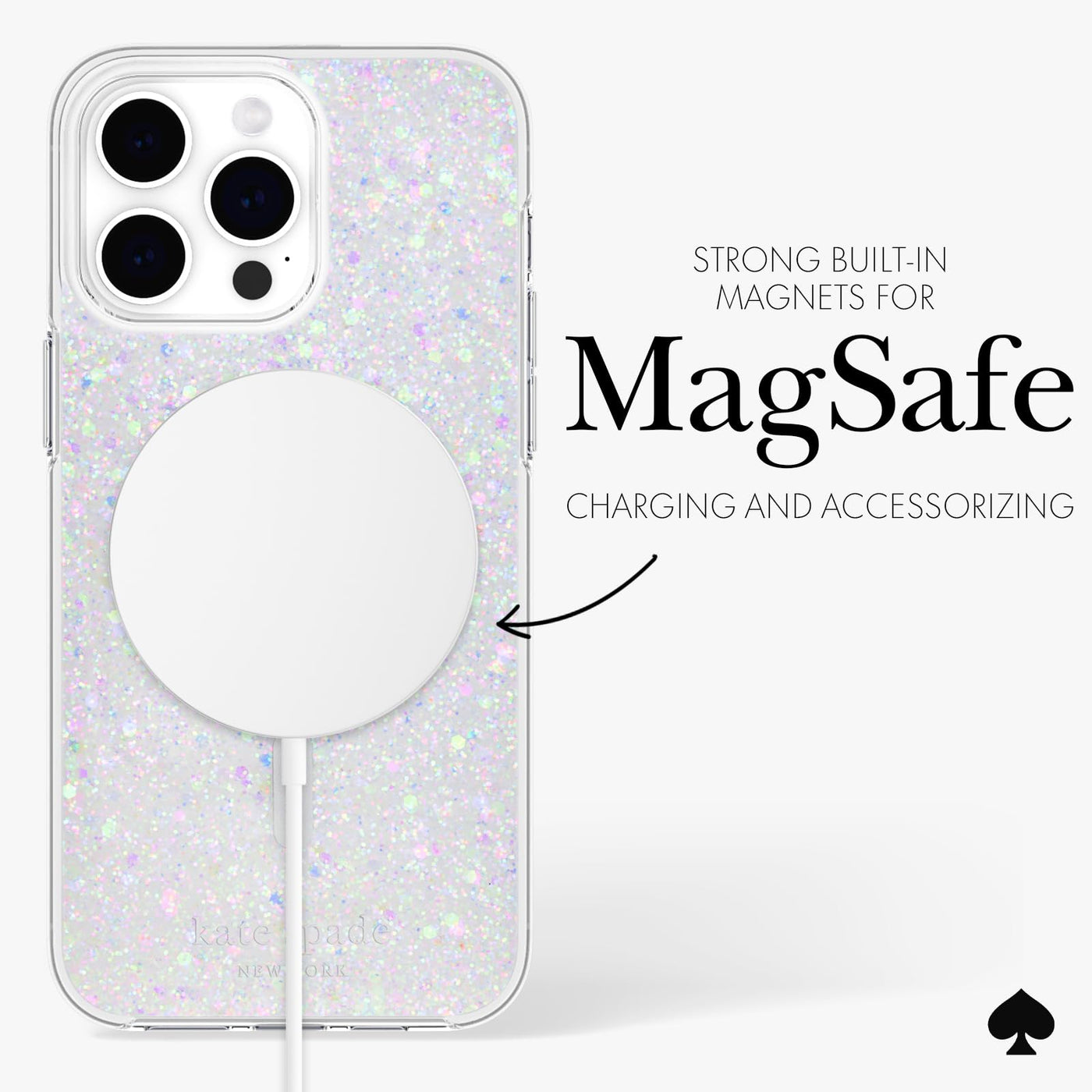 Kate Spade New York Apple Iphone 15 Pro Max Case, Compatible With Magsafe Phone Cover Chunky Glitter Iridescent