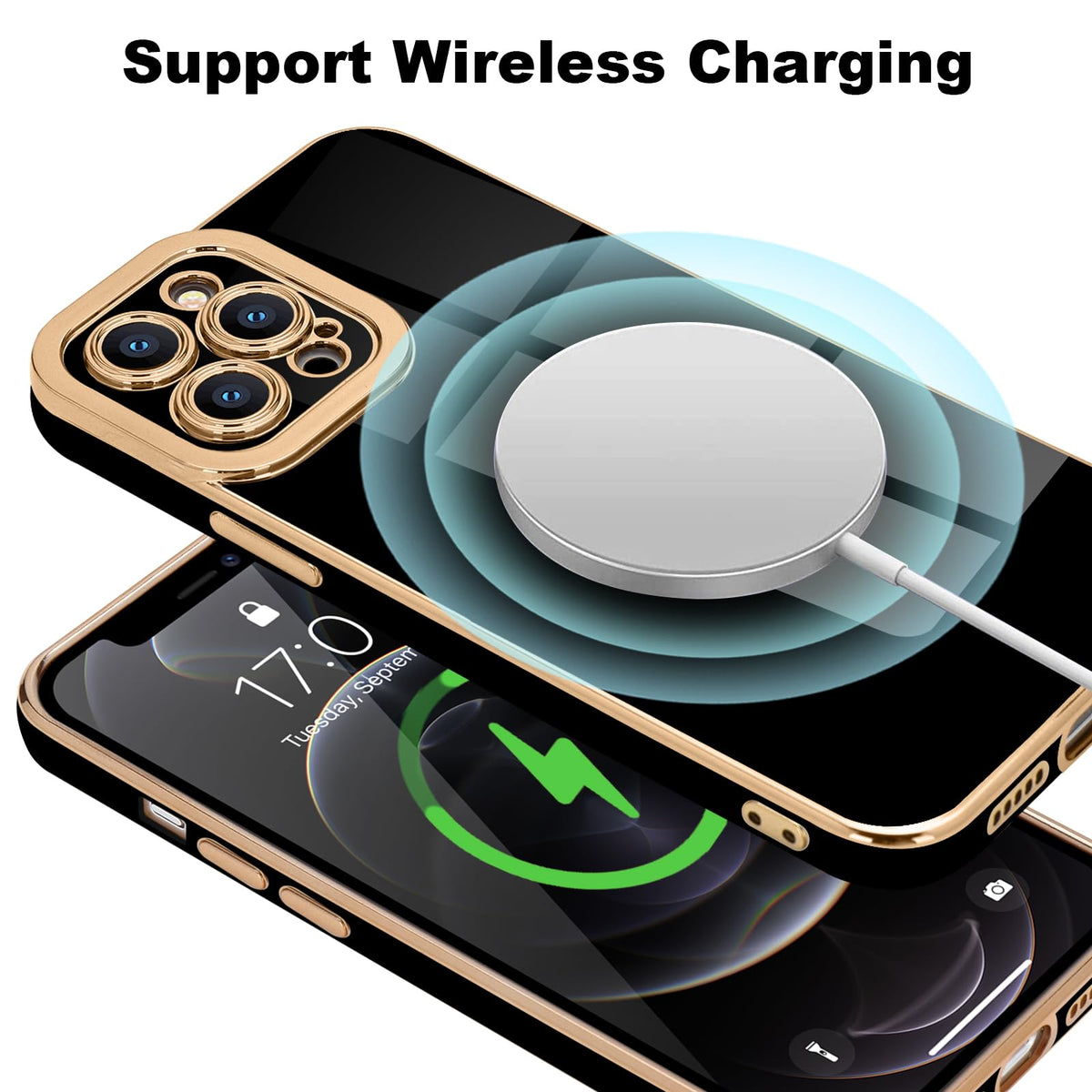 Lafunda Designed For Iphone 12 Pro Max Case, Luxury Plating Case For Women Girls Cute Golden Edge Shockproof Tpu Bumper Cover Wi