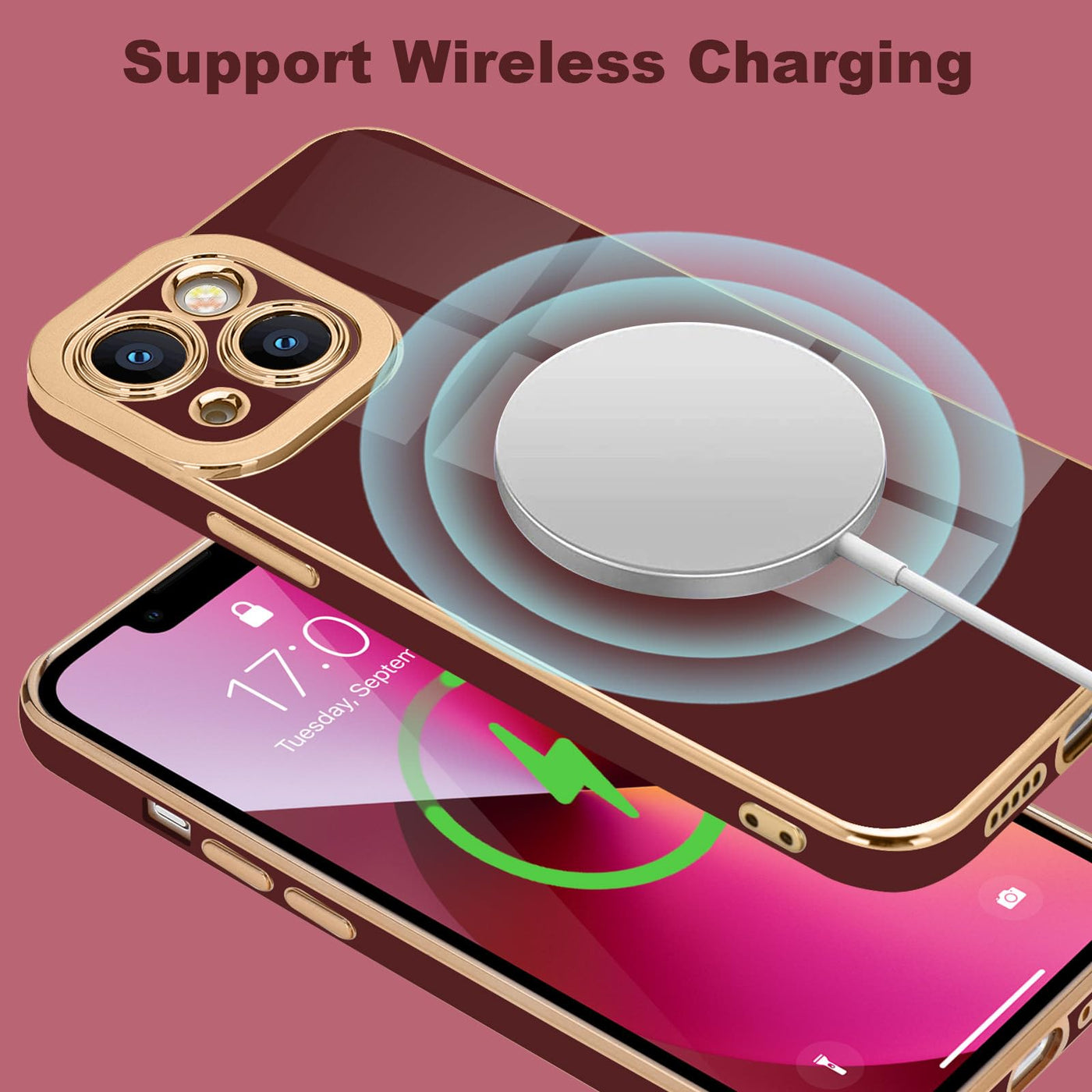 Lafunda Designed For Iphone 13 Case Cute, Luxury Plating Case For Women Girls Elegant Gold Edge Soft Tpu Bumper Cover With Camer
