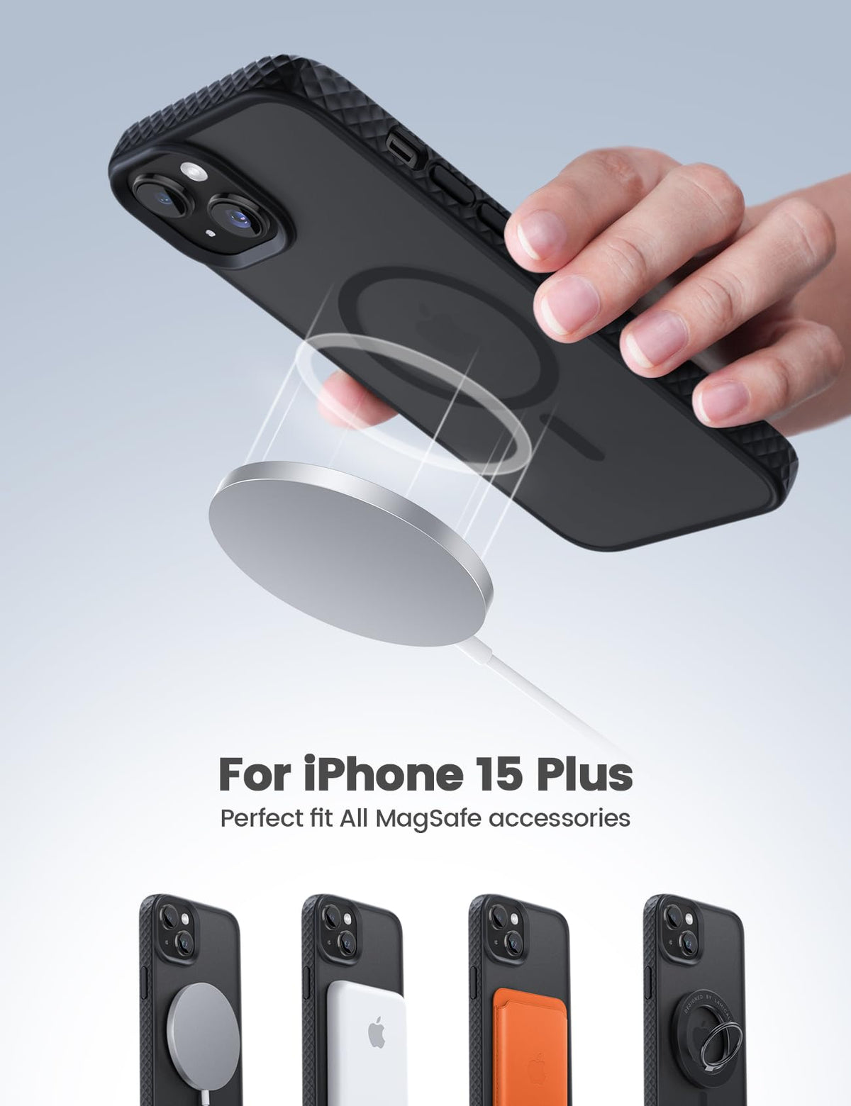 Introducing The Iphone 15 Plus Case, A Mobile Phone Case That Offers A Range Of Impressive Features. With Its 38 X N52 Super Magnets And Upgraded Magnetic Coil Array Design, This Case Ensures A Secure Connection For Safe And Fast Wireless Charging. It Is Fully Compatible With Mag Safe Accessories Such As Chargers, Rings, Wallets, Car Mounts, And More. One Standout Feature Of This Case Is Its Market-Exclusive Diamond Textured Edges, Providing A Superior Grip Compared To Other Cases. Not Only Does This Make It Easier To Hold Your Phone Securely, But It Also Reduces The Risk Of Slipping. The Case'S Magnetic Non-Slip Design Offers A Silky And Comfortable Feel, Enhancing Your Overall User Experience. When It Comes To Protection, The Iphone 15 Plus Case Doesn'T Disappoint. It Features 360 Airbag Drop Protection On All Four Corners, Effectively Absorbing And Dispersing Impact From Accidental Drops Of Up To 10 Feet. The Raised 1.2Mm Screen Edges And 2.9Mm Camera Lens Frames Provide Additional Safeguarding Against Scratches And Impacts When Your Phone Is Placed Face Down. Despite Its Robust Protection, The Iphone 15 Plus Case Maintains A Slim Profile, Ensuring It Doesn'T Add Unnecessary Bulk To Your Phone. Its Minimalist And Translucent Design, Combined With Precise Cutouts And Sensitive Buttons, Allows The Unique Original Appearance Of Your Phone To Shine Through While Providing A Comfortable Tactile Experience. When You Purchase The Iphone 15 Plus Case, Not Only Do You Receive A Stylish And Functional Protective Solution, But You Also Benefit From Lamicall'S Worry-Free 18-Month Warranty And Friendly Customer Service. With This Comprehensive Package, You Can Have Peace Of Mind Knowing That Your Phone Is Well-Protected And Supported. Experience The Difference With The Iphone 15 Plus Case - Order Now And Enjoy The Perfect Blend Of Style, Protection, And Functionality For Your Mobile Phone.