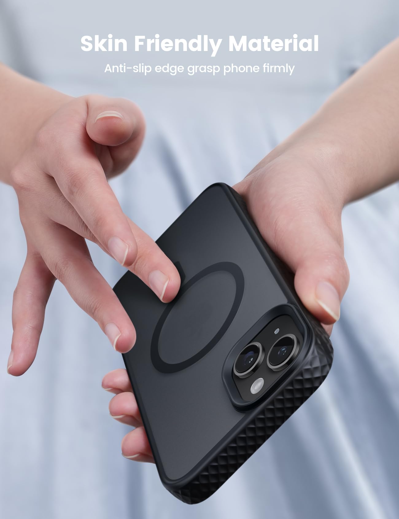 Lamicall Magnetic Case For Iphone15 Plus, Fits For Magsafe [Diamond Textured Edge] [Anti Slip] [Military Grade Shockproof] Tra
