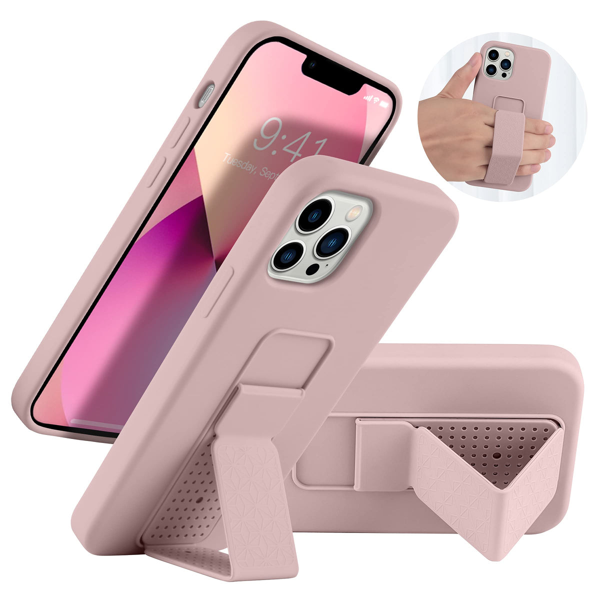 Laudtec Silicone Kickstand Case Compatible With Iphone 13 Pro Max Case Vertical And Horizontal Stand Hand Strap Kickstand, Flexible Soft Liquid Silicone Stand Case For Iphone 13 Pro Max(Light Pink)