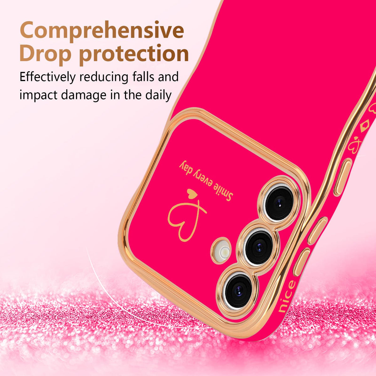 Lchulle Shiny Gold Electroplating Wavy Shape Case Compatible With Samsung Galaxy S24 5G For Women And Girls. Product Feathers: Made Of High-Quality Durable Soft Tpu Materials, Lightweight, Easy To Grip And Provides Strong Drop Protection For Your Phone. Elegant And Luxurious Shiny Gold Electroplating Lines And Wavy Edges, Make Your Phone Shine In The Light Or Sunlight And More Eye-Catching. Equipped With Unique Integrated Raised Camera Lens Frame Design Perfectly Protects Your Camera Lens From Daily Scratches, Drops, And Impacts. Adorable Love Heart Pattern On The Camera Lens Frame And The Side Make Your Phone More Distinctive. All Buttons And Ports Have Precise Cutouts. Gives You Easy Access To All Controls And Functions, Speakers, Camera And Other Ports. Supports Wireless Charging. Package Included: 1 X Super Cute Gold Plating Wave Case For Samsung Galaxy S24 5G