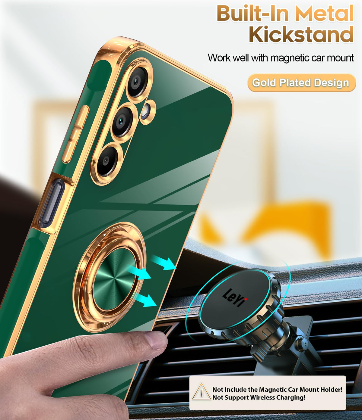 Leyi For Galaxy A15 5G Case: With 2 Pack Tempered Glass Screen Protector And 360 Rotatable Ring Holder Magnetic Kickstand, Plati
