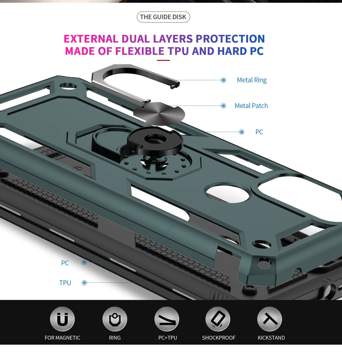 Q: What materials are used in the construction of the LeYi case?A: The LeYi case is made from a dual-layer hybrid combination of PC (polycarbonate) and TPU (thermoplastic polyurethane) materials, providing superior protection against drops and scratches.