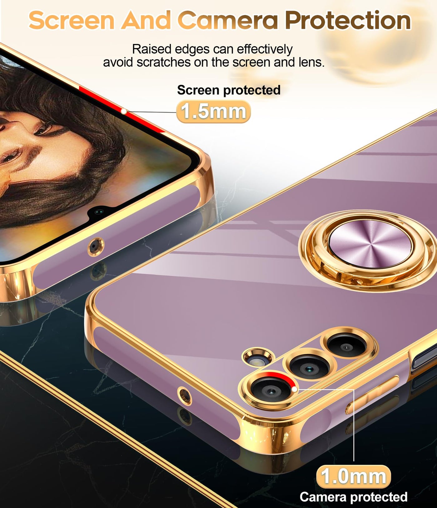 Leyi For Samsung Galaxy A15 5G Case: With Tempered Glass Screen Protector [2 Pack] 360 Rotatable Ring Holder Magnetic Kickstand,
