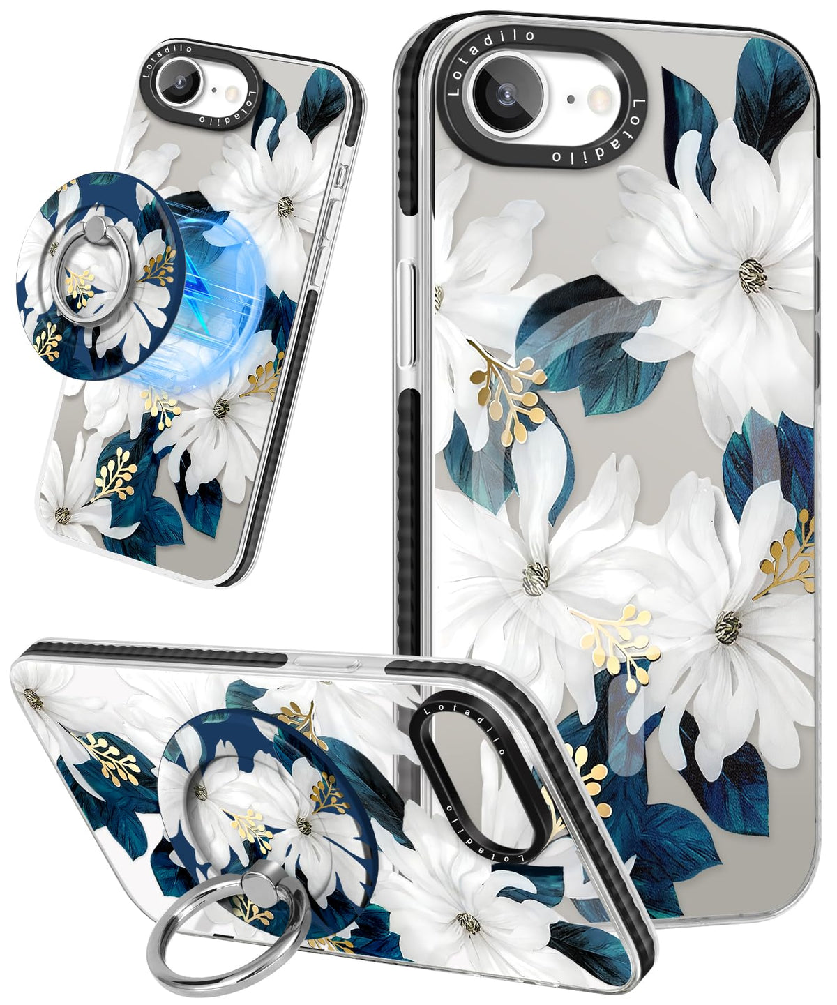 Lotadilo Cute Case For Iphone 16E For Women Girls - Funny Blue Flower Design Compatible With Magsafe Magnetic Ring Holder Kickst