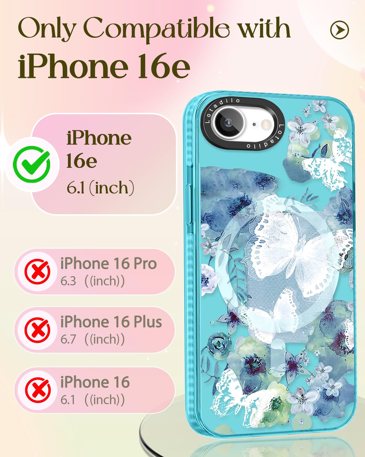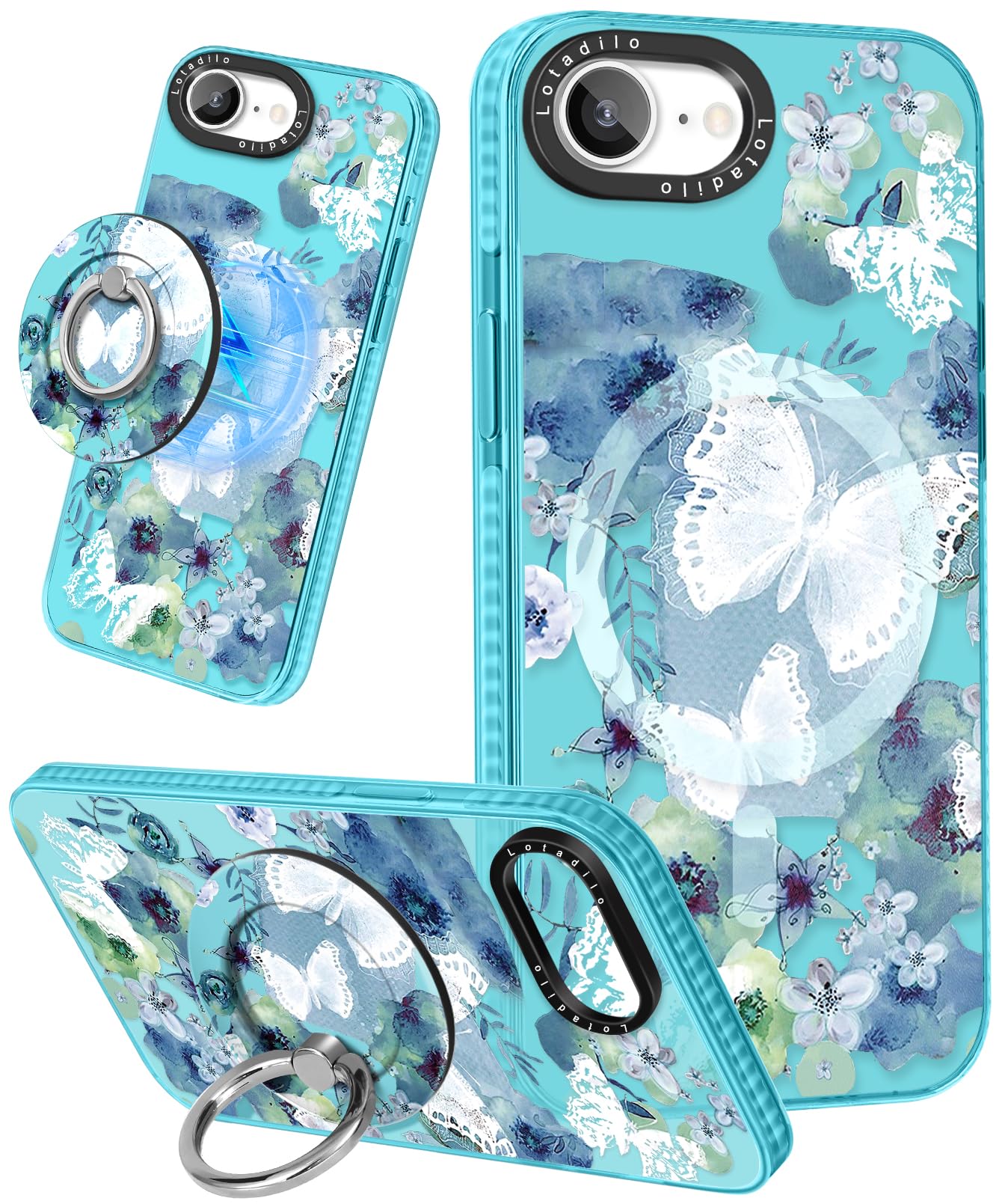 Lotadilo Cute Case For Iphone 16E For Women Girls - Funny Ink Butterfly Design Compatible With Magsafe Magnetic Ring Holder Kick