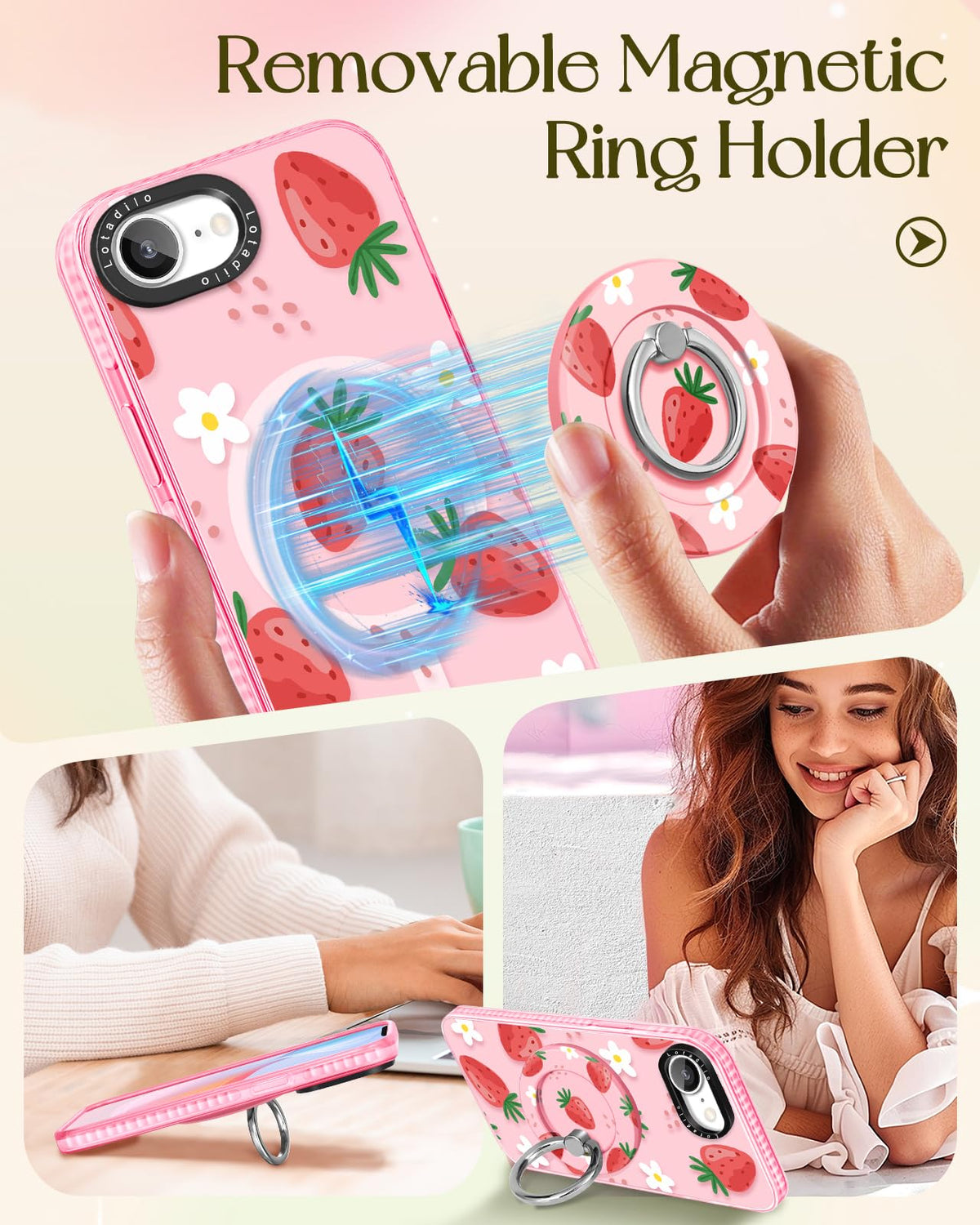 Lotadilo Cute Case For Iphone 16E For Women Girls - Funny Strawberry Flower Design Compatible With Magsafe Magnetic Ring Holder