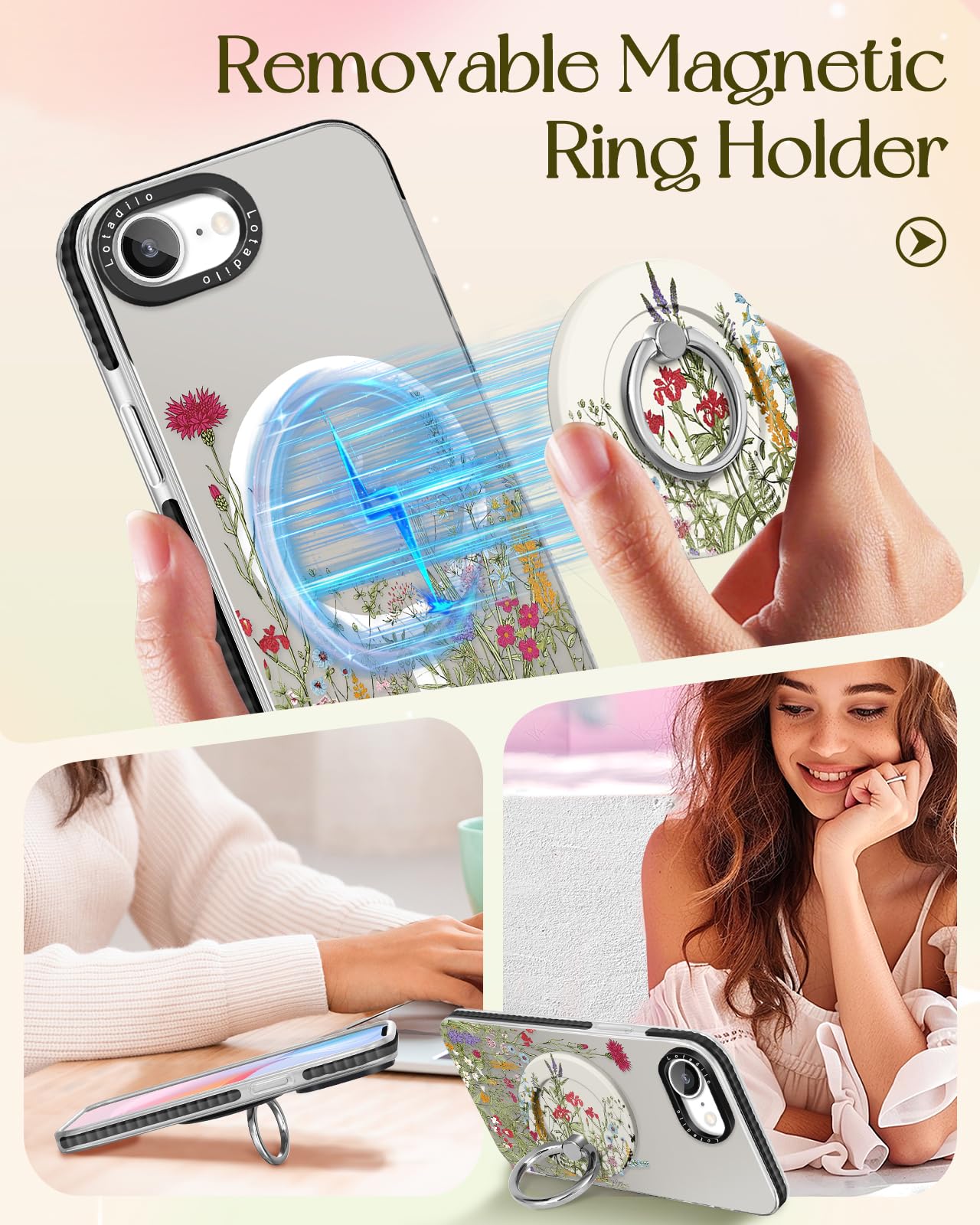 Lotadilo Cute Case For Iphone 16E For Women Girls - Funny Wild Floral Design Compatible With Magsafe Magnetic Ring Holder Kickst