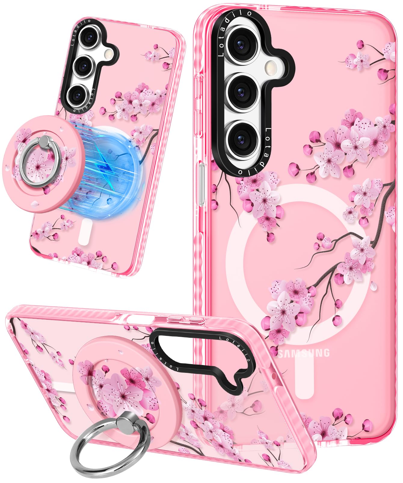 Lotadilo Cute Case For Samsung Galaxy A16 For Women Girls - Funny Peach Blossom Design Compatible With Magsafe Magnetic Ring Hol
