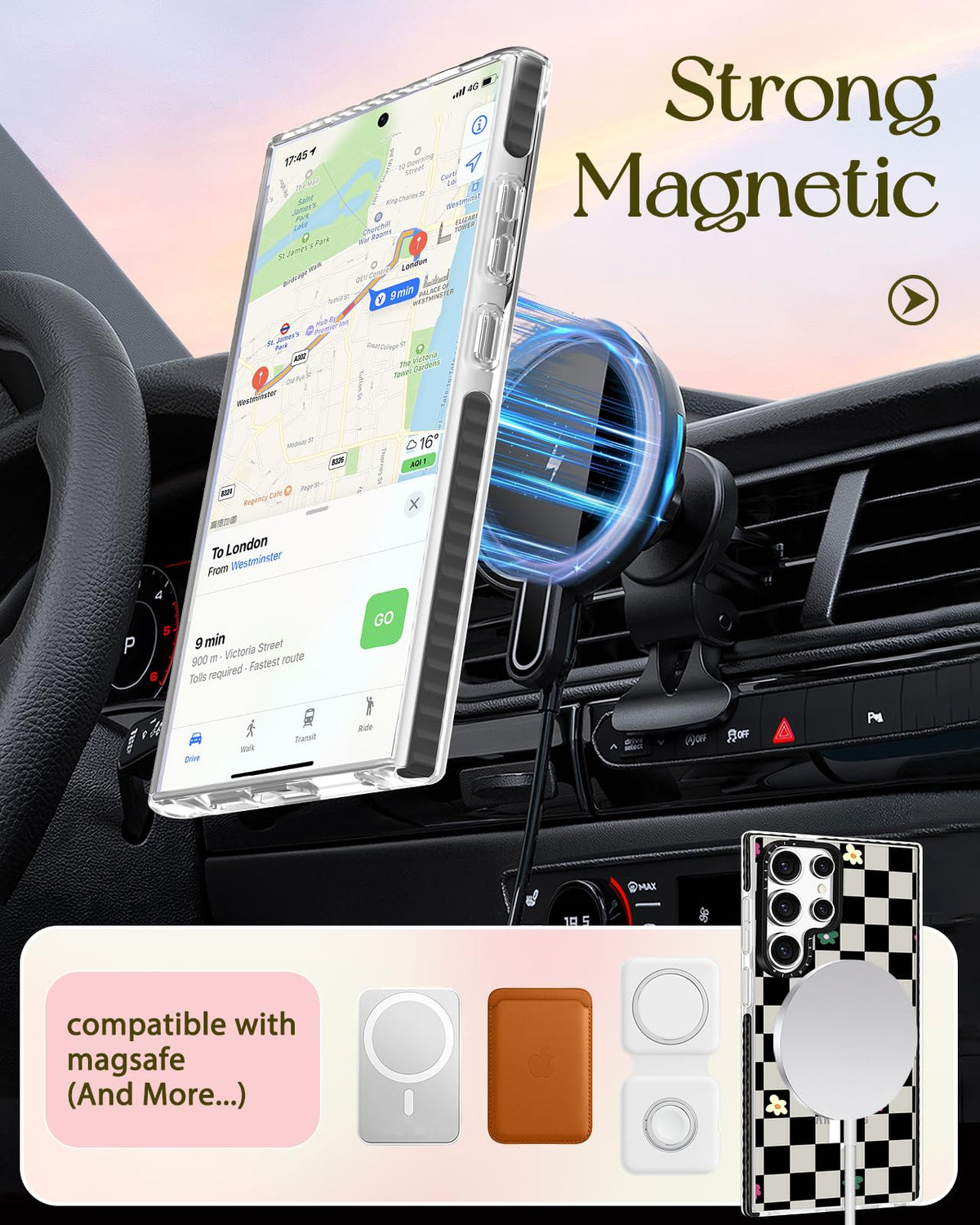 Lotadilo Cute Case For Samsung Galaxy S25 Ultra For Women Girls - Funny Plaid Flower Design Compatible With Magsafe Magnetic Rin