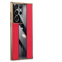 Lunivop For Samsung Galaxy S22 Ultra 5G 6.8 Inch Luxury Case Tpu Carbon Fiber & Leather Back Cover Compatible With S22Ultra 2022