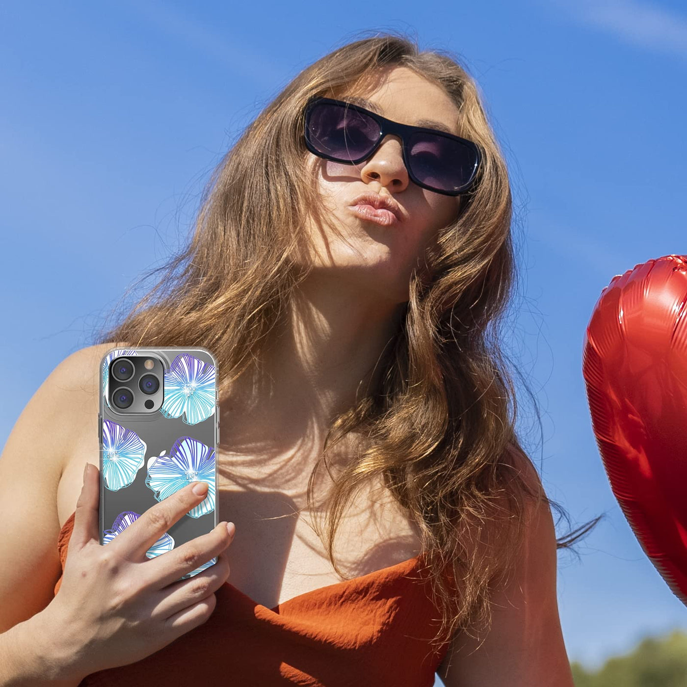 M Mybat Pro Slim Clear Crystal Case For Iphone 14 Pro Max Case 6.7 Inch, Cute Stylish Mood Series Shockproof Non-Yellowing Protective Cover, Bling Diamond Flower Pattern, Blue Seashell