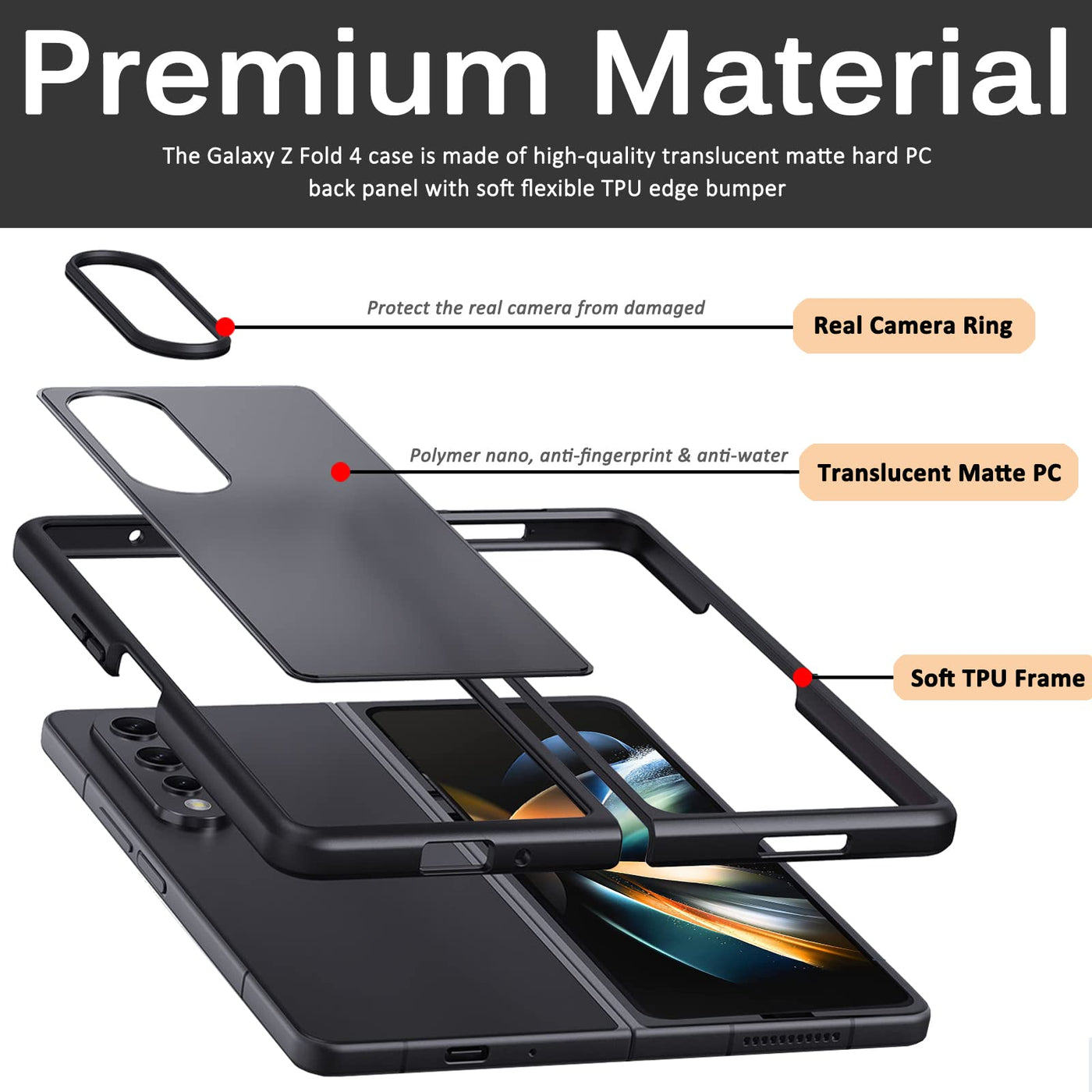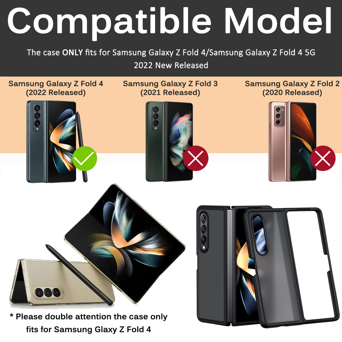 Compatible Modelthe Case Only Fits For Samsung Galaxy Z Fold 4 5G 2022 (Notice: Not Suitable For Samsung Galaxy Z Fold 3 Z Fold 2 Z Fold 2019 Case Only) Remium Materialthe Galaxy Z Fold 4 Case Is Made Of High-Quality Translucent Matte Hard Pc Back Panel With Soft Flexible Tpu Edge Bumper, Anti-Slip And Skin-Friendly To Be Hold With Special Polymer Nano Material Covering On The Back Panel, Effectively Prevent Fingerprint Leaving On The Case, Scratch Resistant And Waterproof Ilitary Grade Protectionrotected By Corners With Raised Edge, Which Will Absorb A Large Part Of Shock Or Bump, Effectively Prevent Daily Accidental Scratches And Collisions, The Rear Camera Is Also Protected By The 2Mm Raised Edge Ultra-Thin & Preciseadopt Ultra Thin Cover And Back To Keep The Original Z Fold 4 Shape,Seamlessly Fits The Phone Will Not Slide Off Easily And Free Folding Real Phone To Open Mold Design Is Easier To Dissipate Heat Lightweight Give You No Bulky Precise Cutout Ensures All Speakers, Buttons And Ports Are Accessed Easily Ackage & After-Sales Service 1 X Protector Case For Samsung Galaxy Z Fold 4 5G 20221 X After-Sales Card After-Sales Service: If You Have Any Questions About This Case, Please Feel Free To Contact Us Our Reliable Customer Service Will Be Replied Within 24 Hours