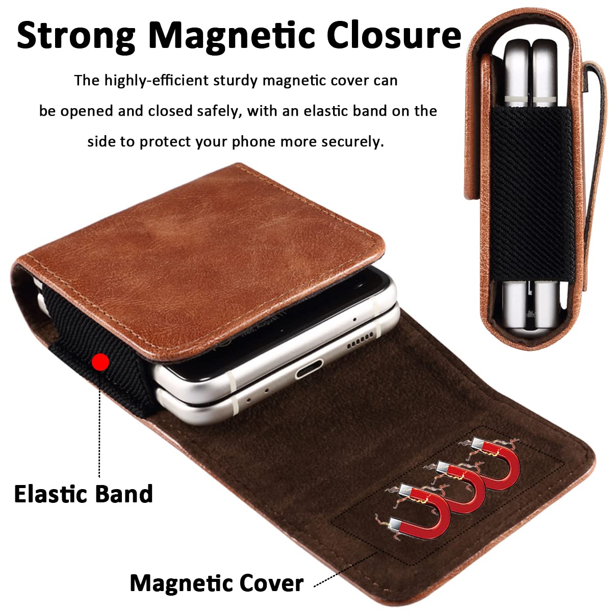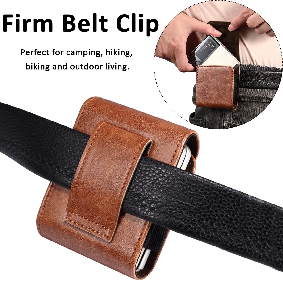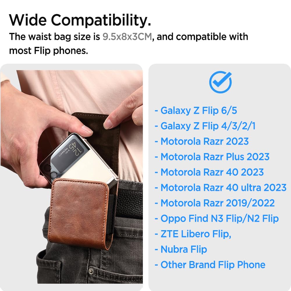 Compatibilitythe Phone Pouch With Belt Clip Is Compatible With Samsung Galaxy Z Flip 4, Galaxy Z Flip 3, Galaxy Z Flip 5G, Galaxy Z Flip, Motorola Razr Verizon (2019), Motorola Razr 5G (At&T T-Mobile) And Other Flip Phones Remium Leather Materialthe Elegant Phone Holster Is Made Of High-Quality Leather Materials With Durable Elastic Bands, Which Not Only Shows A Stylish And Unique Texture, But Also Protects Your Phone From Scratches And Damage Irm Belt Clipthe Back Of The Phone Pouch Has A Strong Clip That Can Easily Hold Your Belt Without Worrying About It Coming Off, Perfect For Camping, Hiking, Biking And Outdoor Life Strong Magnetic Closurethe Highly-Efficient Sturdy Magnetic Cover Can Be Opened And Closed Safely, With An Elastic Band On The Side To Protect Your Phone More Securely Besides, The Opening At The Bottom Allows You To Push Your Phone Up Faster Ackage & Miimall Servicethe Package Includes: 1 X Phone Pouch, 1 X After-Sales Card If You Have Any Questions About This Pouch, Please Feel Free To Contact Us Our Reliable Customer Service Will Be Replied Within 24 Hours